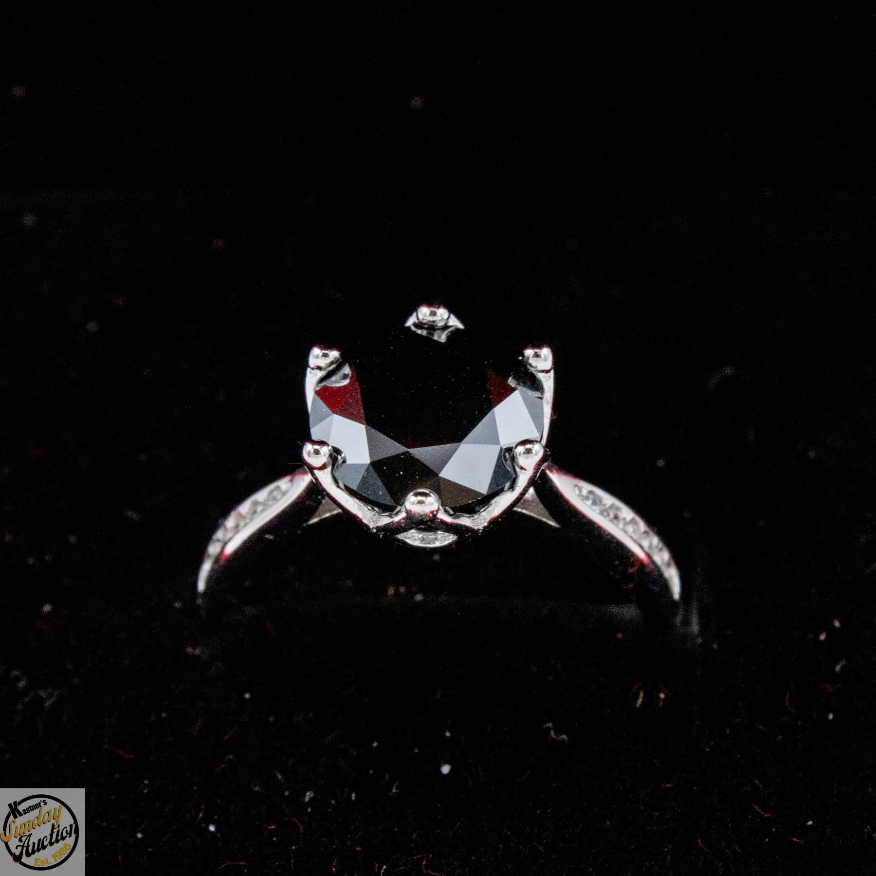 MOISSANITE STONE VVS BLACK COLOR WITH 12 ROUND BRILLIANT CUT CUBIC ZIRCONIA SET IN SHANKS SET IN 925 SILVER RING SIZE 6 RETAIL VALUE $1,275.00 **ALL ITEMS MUST BE REMOVED BY 5PM SATURDAY, APRIL 11TH 2026. ALL REMAINING ITEMS WILL BE SUBJECT TO A $6.00 PER DAY STORAGE CHARGE. ANY ITEMS REMAINING AFTER MONDAY, APRIL 27TH 2026 WILL BE CONSIDERED FORFEITED. NO REFUNDS WILL BE ISSUED FOR FORFEITED ITEMS. TO SCHEDULE A PICK UP APPOINTMENT CLICK HERE