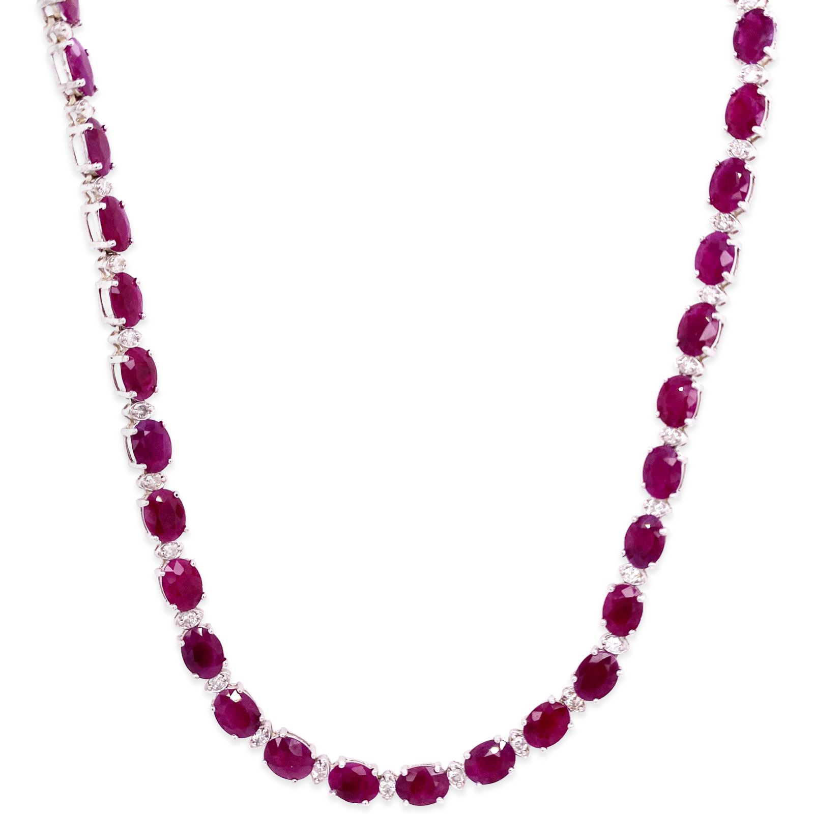 40ct RUBY 14K WHITE Gold 24.5gm Diamond 1.75ct Neckalce #RBY229