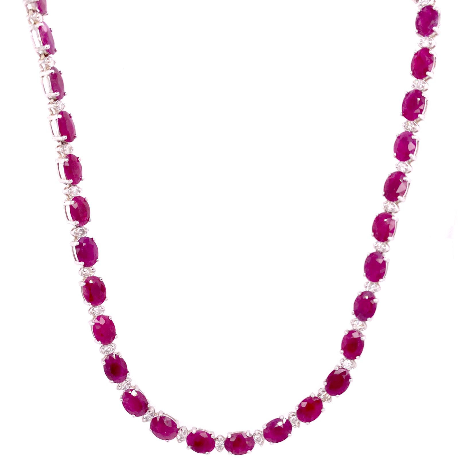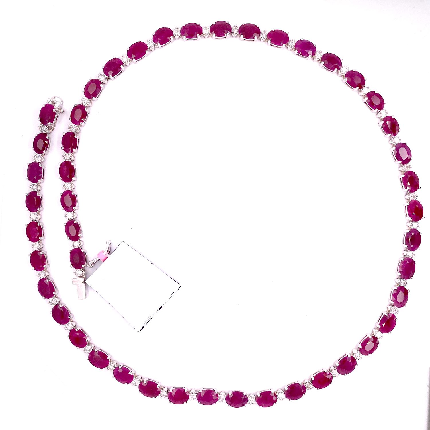 40ct RUBY 14K WHITE Gold 24.5gm Diamond 1.75ct Neckalce #RBY229