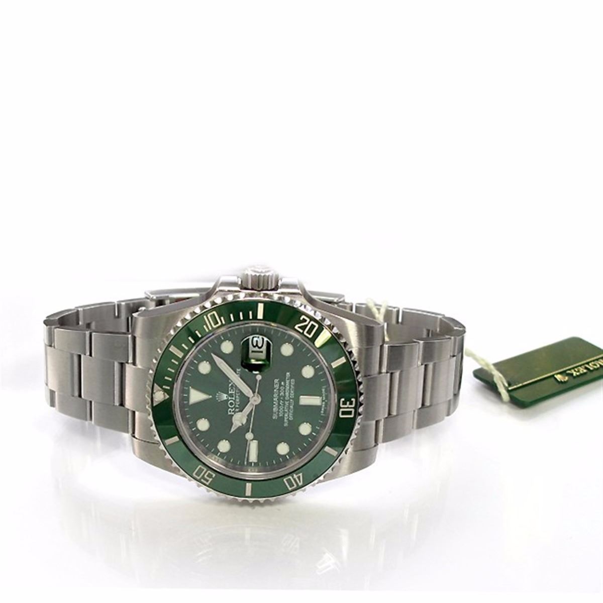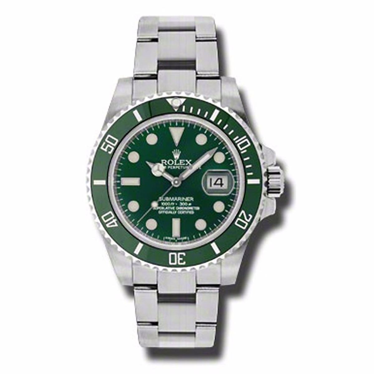 40mm Rolex Stainless Steel Oyster Perpetual Submariner Anniversary Watch. Green Dial. Green Ceramic Bezel. Stainless Steel Oyster Band. Style 116610LV/32627