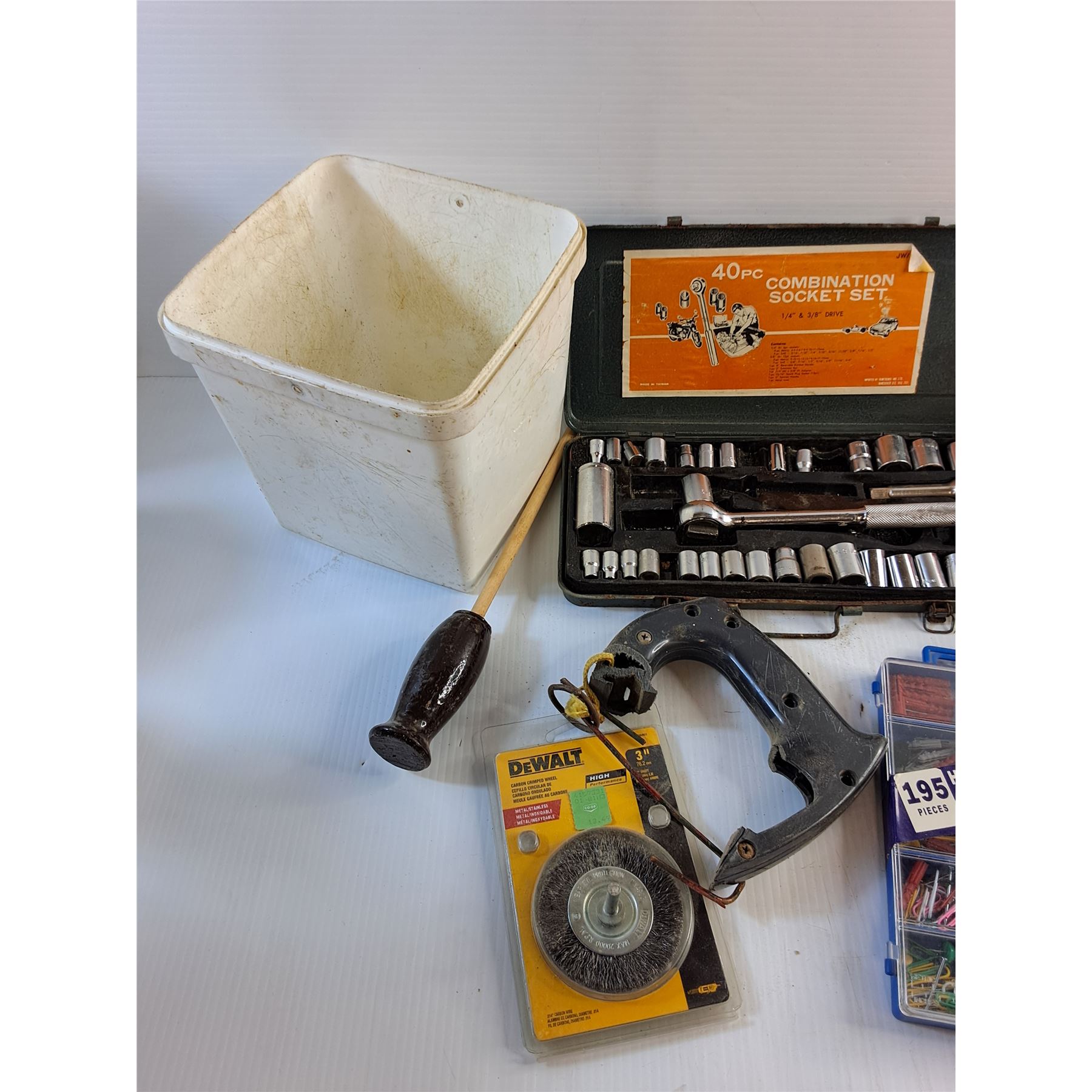 40pc Combination Socket Set, Bit Screwdriver, Carbon Crimped Wheel, 195pc Household Kit, Metal Brush