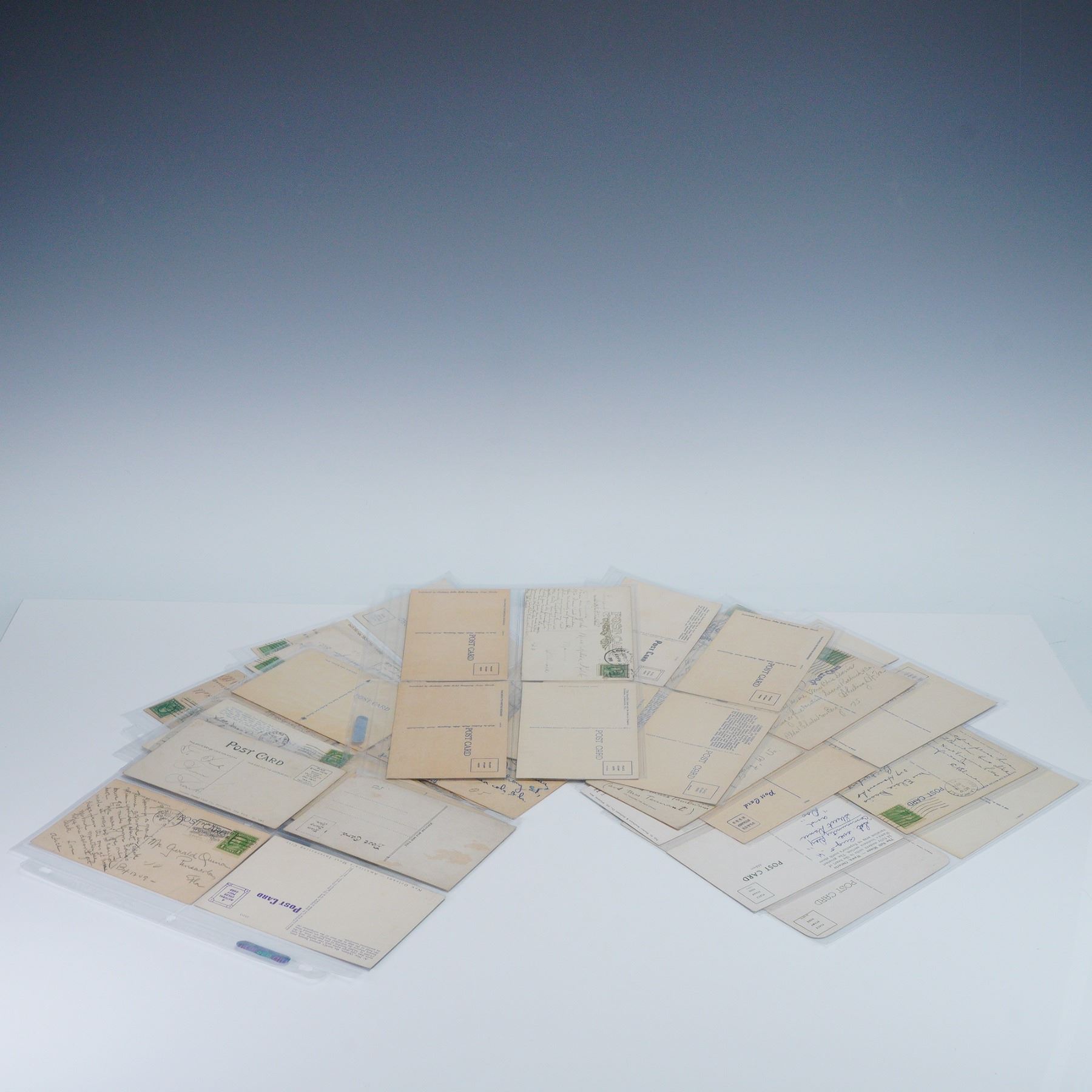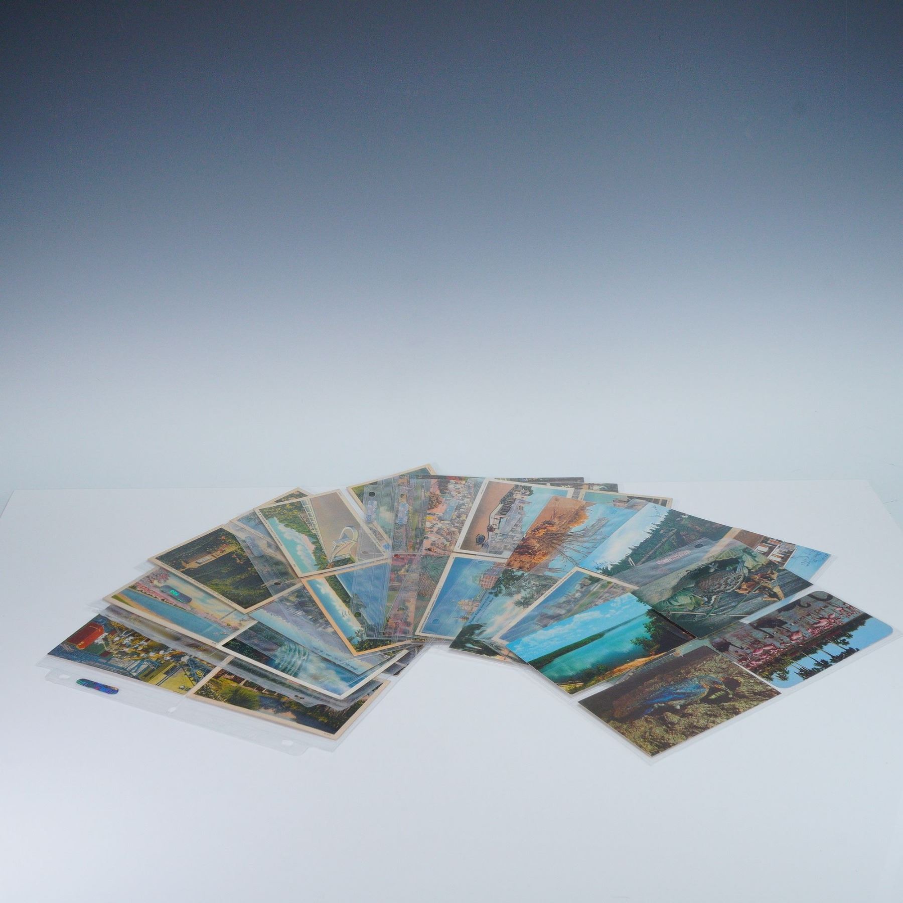 Includes postcards from various U.S. states and cities such as Miami, Florida, Virginia, the border of the United States and Canada, Iowa, Pennsylvania, Atlantic City New Jersey, Washington D.C., and many more. Depicts a range of scenic views, animals, birds, architectural landmarks, and picturesque landscapes. Many examples bear handwritten correspondence. Preserved in protective sleeves.
