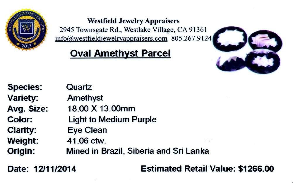 41.06ctw. Oval Amethyst Parcel Westfield Appraised at $1,266.00.
