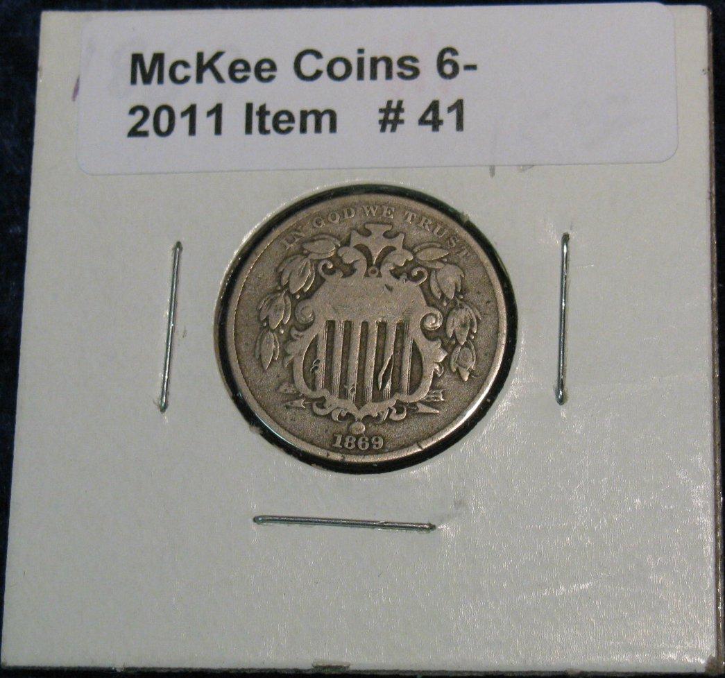 41. 1869 Shield Nickel. VG-8. Small scratch on obverse.