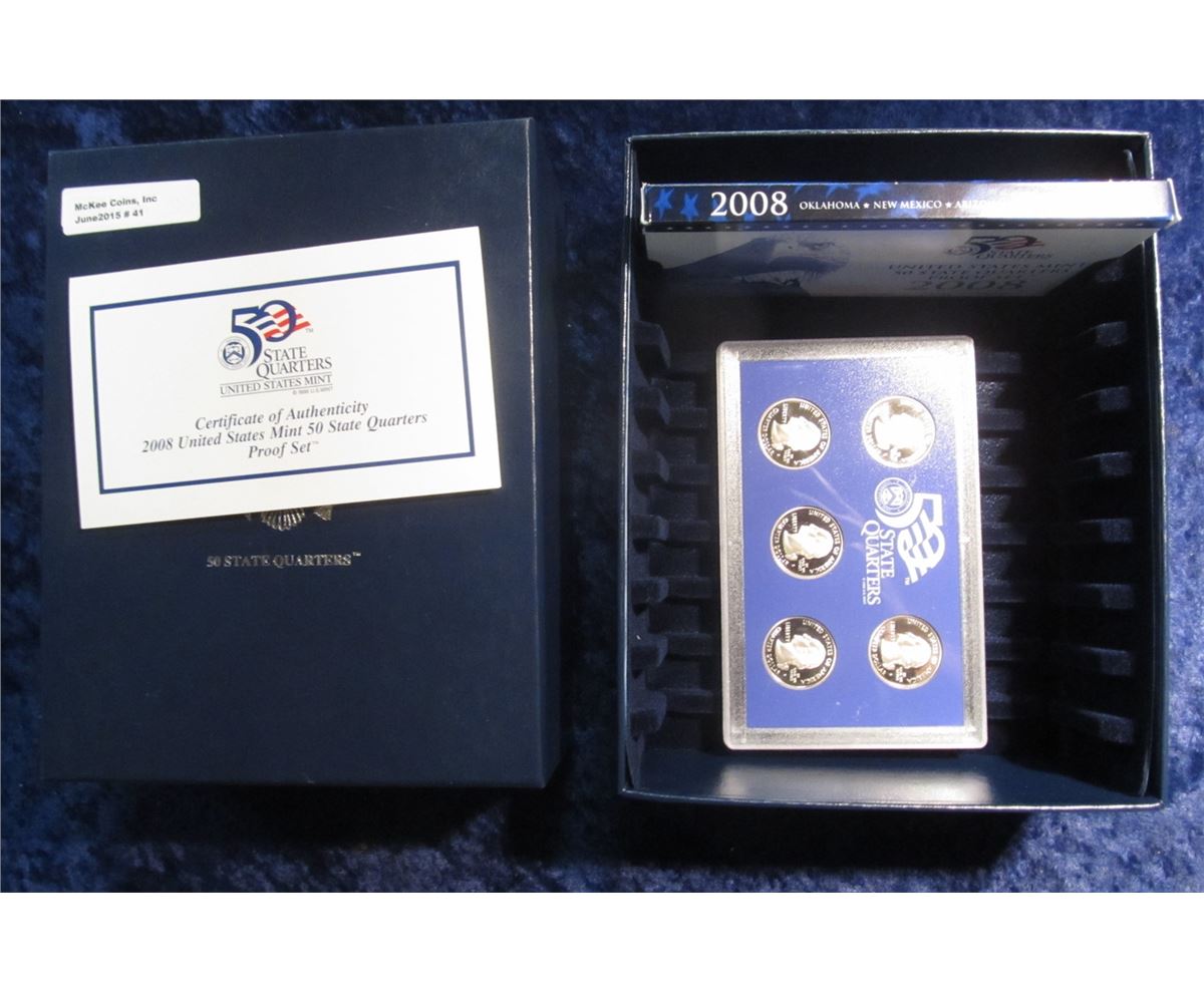 41. 2008 S U.S. Statehood Quarter Proof Set. Original as issued. Along with a storage box for sets.