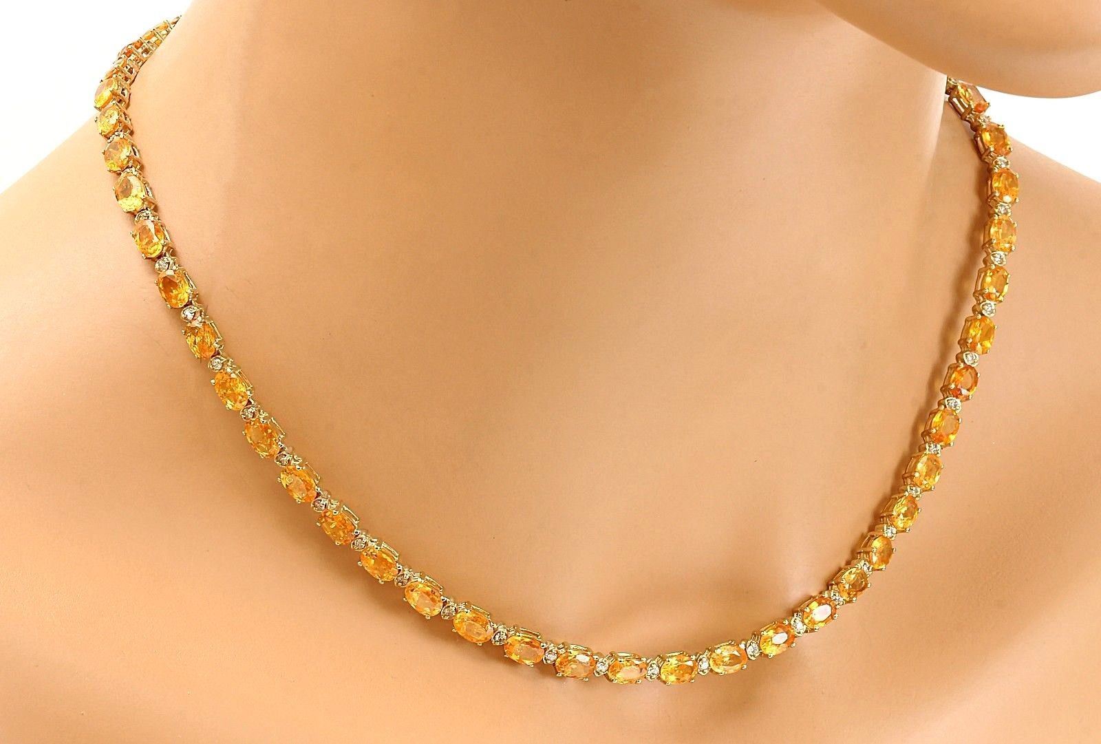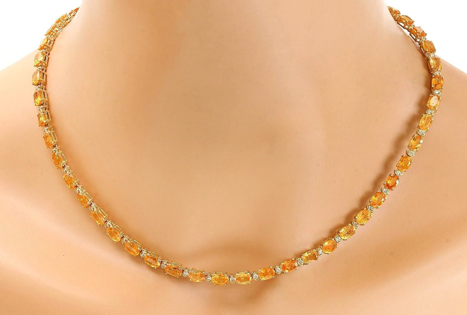 41.25 CTW Natural Citrine 14K Solid Yellow Gold Diamond Necklace