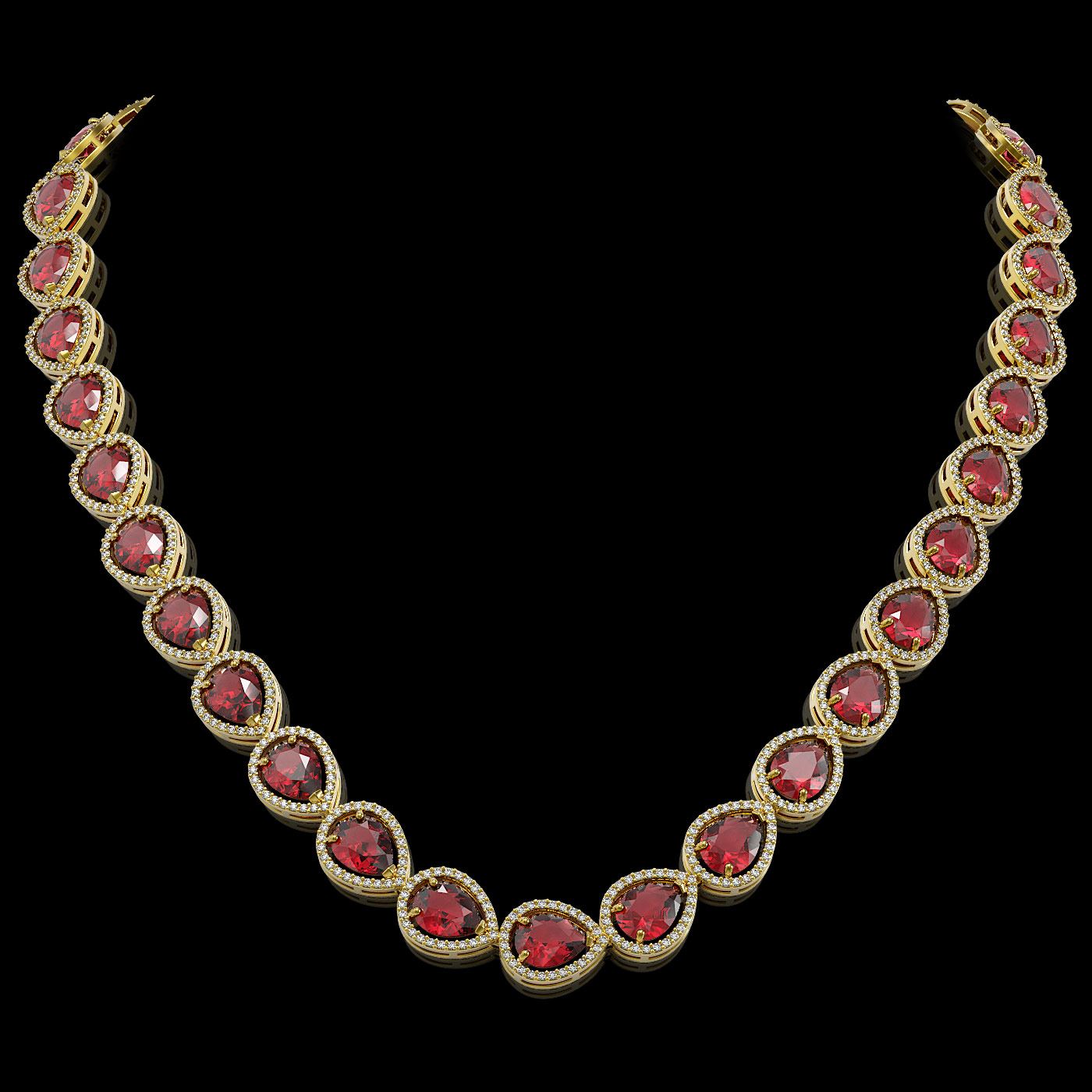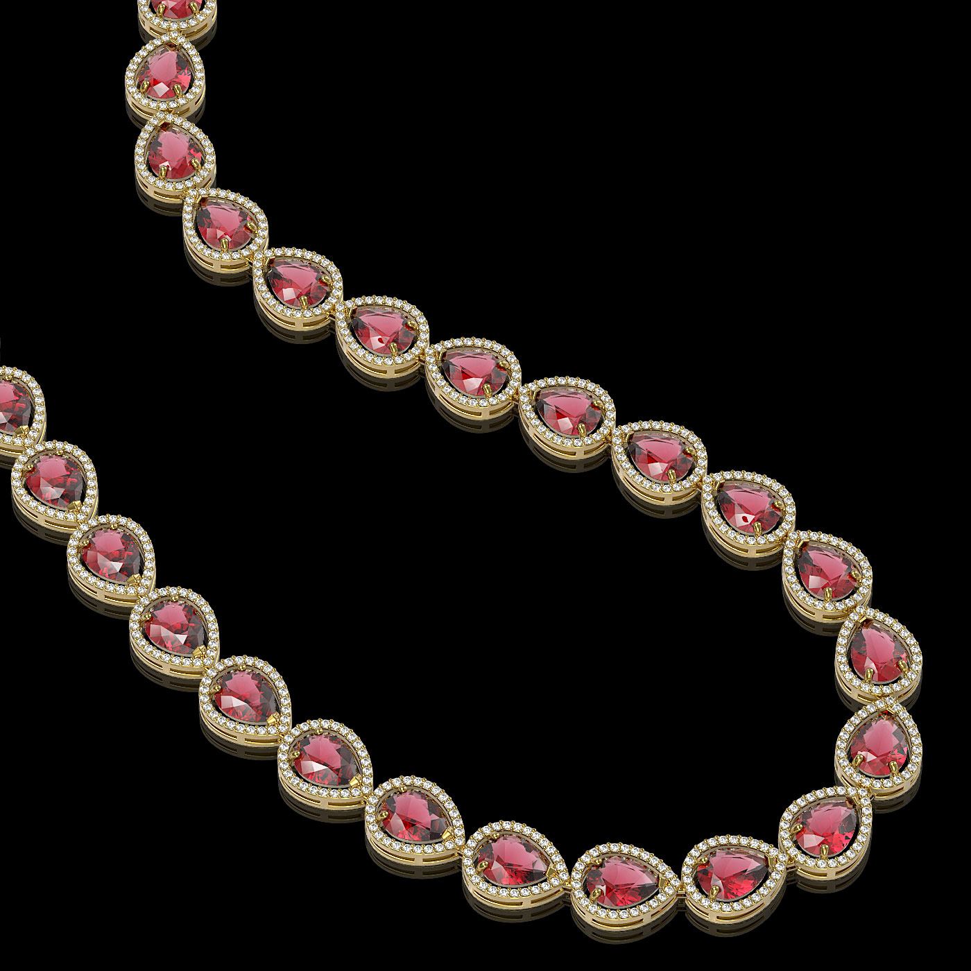 REF-832W4F -41206 ---- 41.6 CTW Tourmaline & Diamond Halo Necklace 10K Yellow Gold ---- Luxury Designer Brand Necklace Appraised at $45,800 Certificate Number US41206 10k Yellow gold, Necklace Size is 16 Inches, Necklace measuring approx. 10 mm x 16 Inches, weighing in total approx. 32 grams. Made in the USA and is stamped 10k, Main stone 35.2 carat total weight containing 32 pieces of Translucent Reddish Pink color with AAA quality Pear shape cut Tourmaline , Stone #2 6.4 carat total weight containing 800 pieces of G-H color with VS/SI quality Round shape cut Diamond