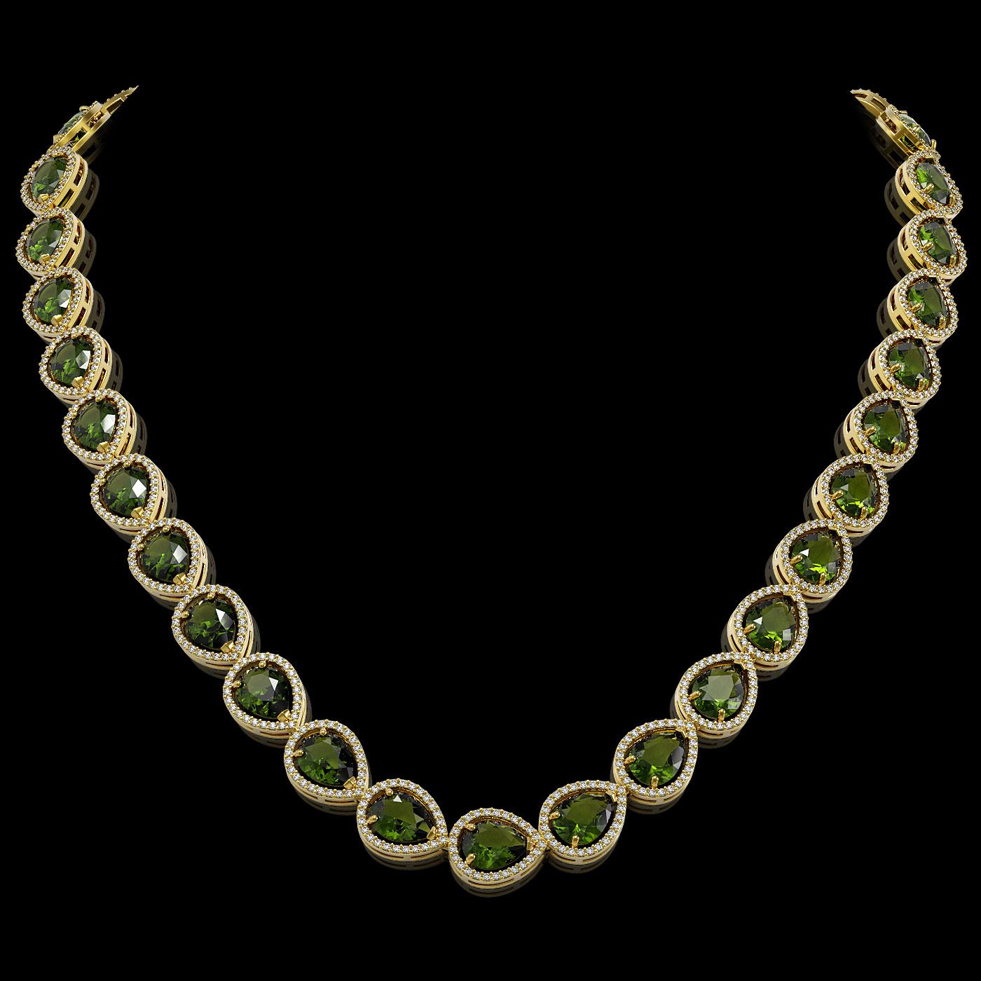 REF-768A4N - SKU: 41209 ---- 41.6 ctw Tourmaline & Diamond Micro Pave Halo Necklace 10k Yellow Gold