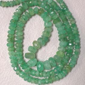 GRADUATED EMERALD RONDELLES STRAND. IT WEIGHTS 41.80 CTS AND MEASURES BETWEEN 3 AND 5 MM. LENGTH: 15 INCHES. INCLUDED