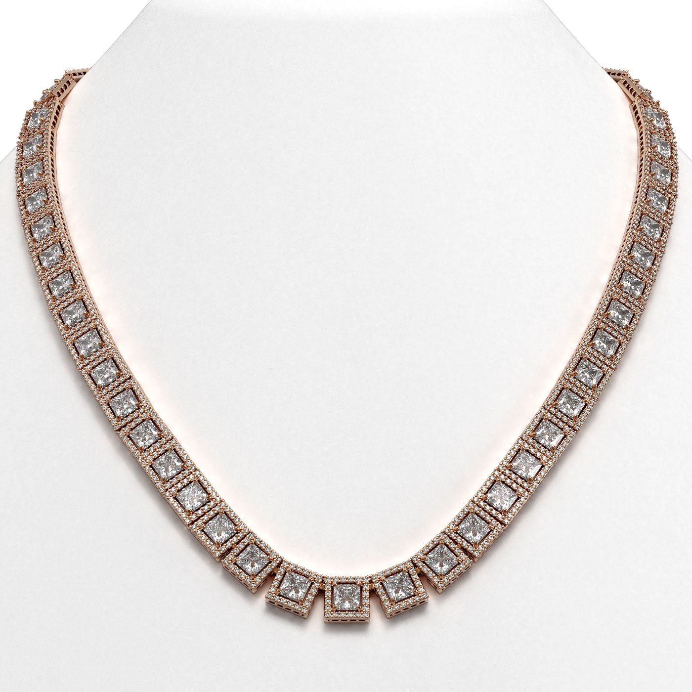 REF-7719K3W -42723 ---- 41.80 CTW Princess Diamond Designer Necklace 18K Rose Gold ---- Luxury Designer Brand Necklace Appraised at $339,650 Certificate Number US42723 18K Rose gold, Necklace Size is 16 Inches, Necklace measuring approx. 8 mm x 16 Inches, weighing in total approx. 55 grams. Made in the USA and is stamped 18K, Main stone 33 carat total weight containing 55 pieces of I-J color with VS/SI quality Princess shape cut Diamond , Stone #2 8.8 carat total weight containing 1100 pieces of G-H color with VS/SI quality Round shape cut Diamond