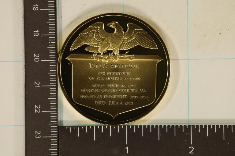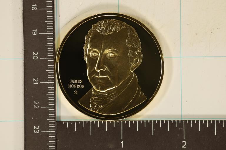 SILVER JAMES MONROE 5TH PRESIDENT OF THE UNITED STATES, BORN APRIL 28TH, 1758, IN HARD PLASTIC CAPSULE