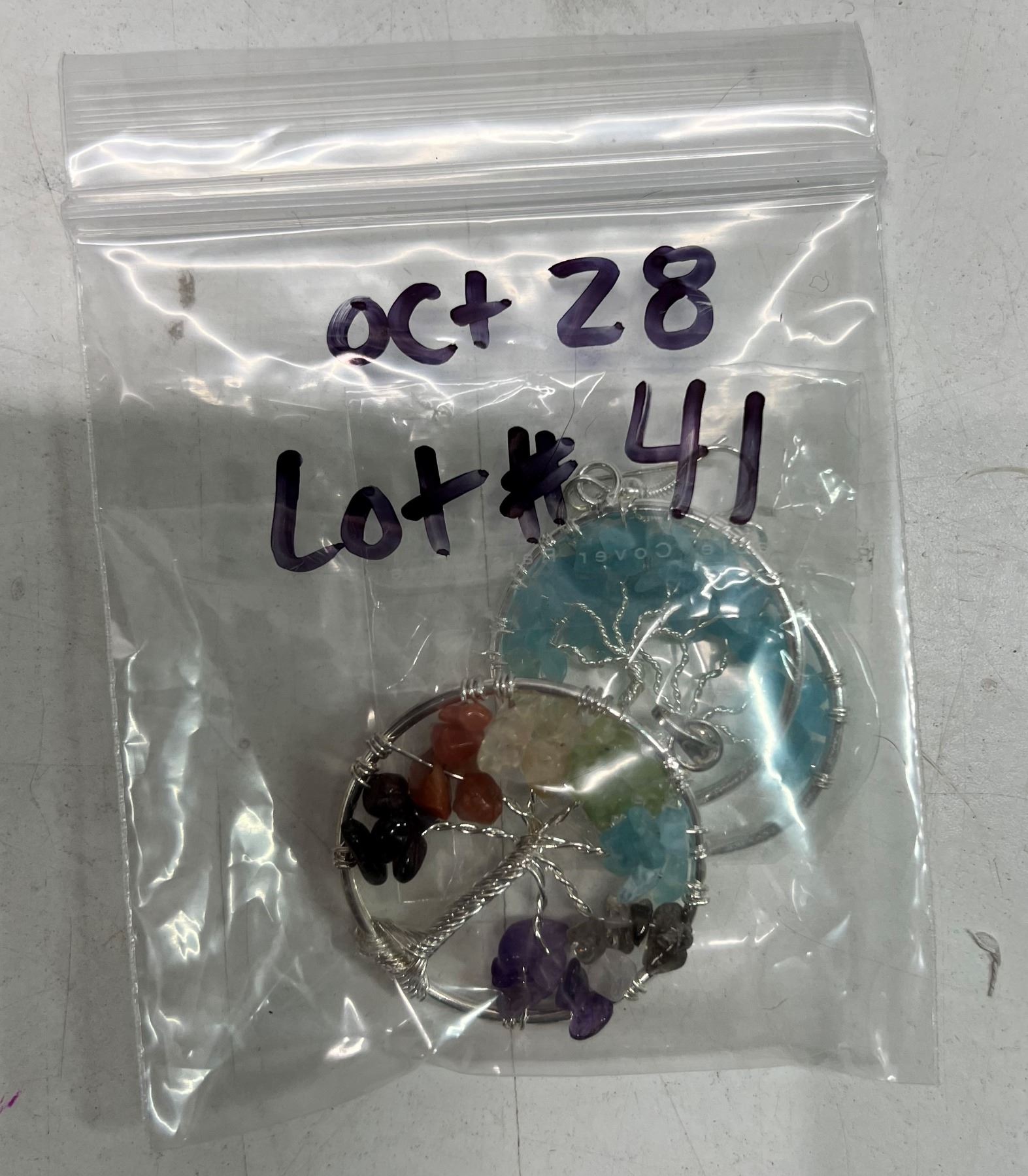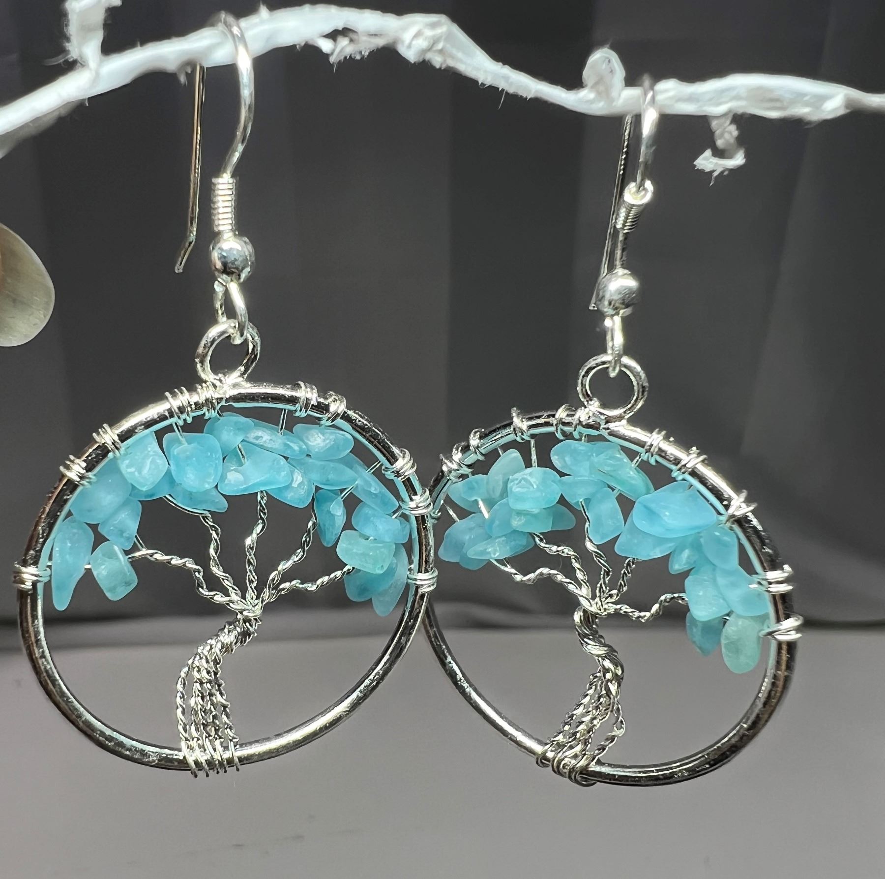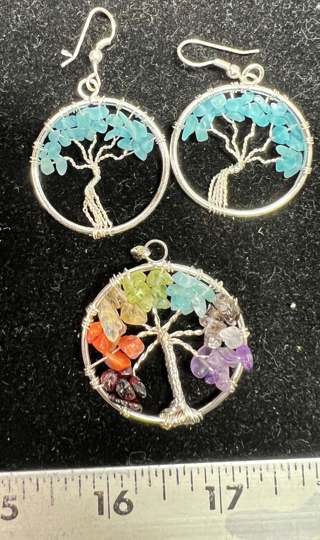 41. Tree of Life Aqua Marine Earrings + Multi Gemstone Tree of Life Pendant