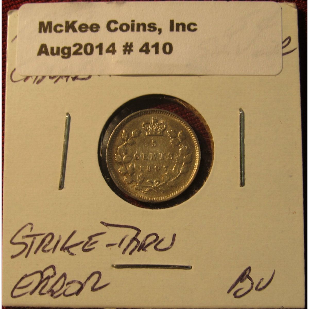 410. 1897 Canada Five Cent Silver. BU. Strike-thru Mint error.