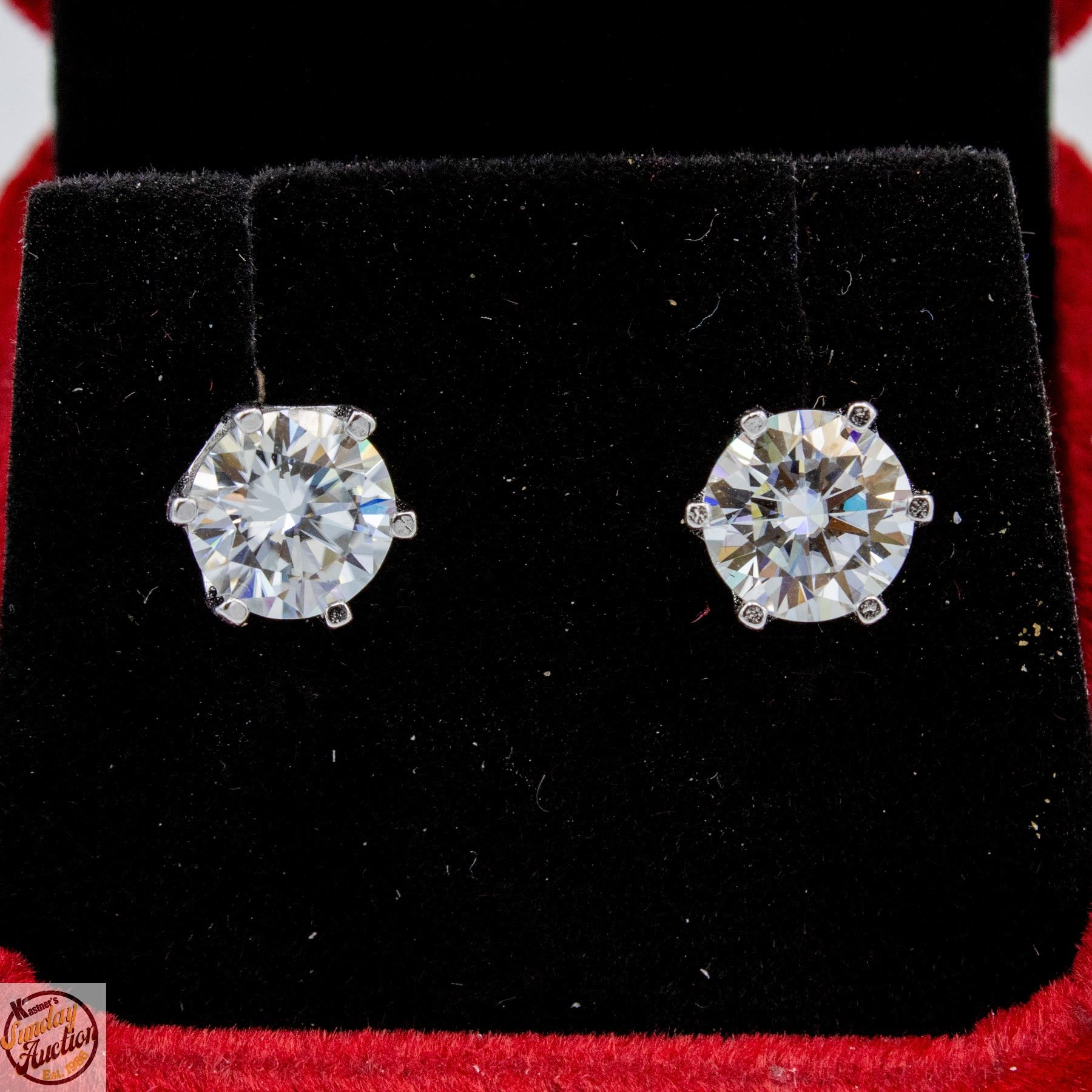 MOISSANITE STONES VVS D COLOR SET IN 6 CLAW FILAGREE BASKET HEAD SET IN 925 SILVER EARRINGS WITH SCREW BACKS RETAIL VALUE $1,225.00 **ALL ITEMS MUST BE REMOVED BY 5PM SATURDAY, APRIL 11TH 2026. ALL REMAINING ITEMS WILL BE SUBJECT TO A $6.00 PER DAY STORAGE CHARGE. ANY ITEMS REMAINING AFTER MONDAY, APRIL 27TH 2026 WILL BE CONSIDERED FORFEITED. NO REFUNDS WILL BE ISSUED FOR FORFEITED ITEMS. TO SCHEDULE A PICK UP APPOINTMENT CLICK HERE
