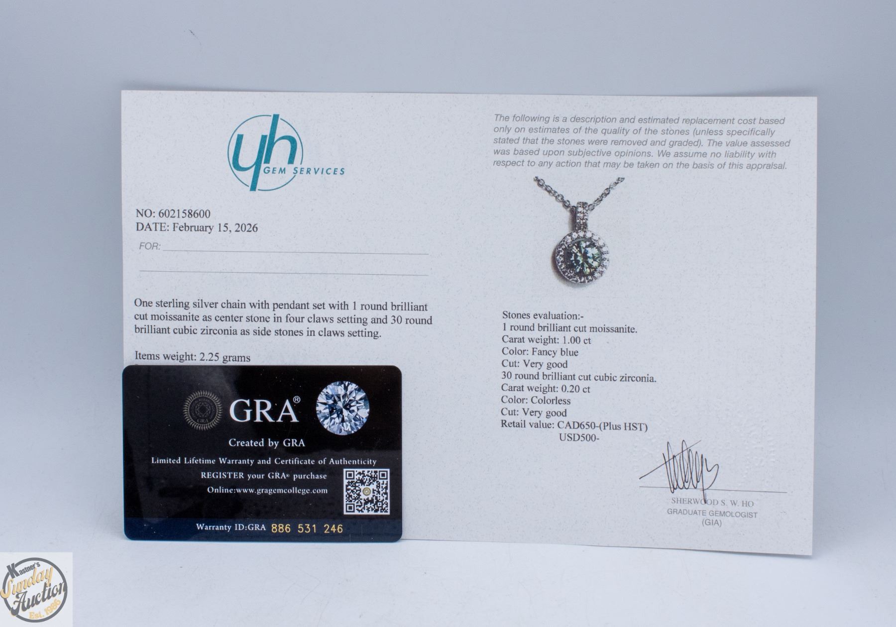 MOISSANITE STONE VVS FANCY BLUE COLOR WITH 30 ROUND BRILLIANT CUT CUBIC ZIRCONIA SET IN ROUND HALO SET IN 925 SILVER PENDANT RETAIL VALUE $650.00 **ALL ITEMS MUST BE REMOVED BY 5PM SATURDAY, APRIL 11TH 2026. ALL REMAINING ITEMS WILL BE SUBJECT TO A $6.00 PER DAY STORAGE CHARGE. ANY ITEMS REMAINING AFTER MONDAY, APRIL 27TH 2026 WILL BE CONSIDERED FORFEITED. NO REFUNDS WILL BE ISSUED FOR FORFEITED ITEMS. TO SCHEDULE A PICK UP APPOINTMENT CLICK HERE
