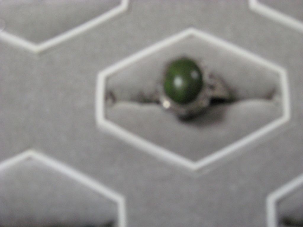 4108 - 10 kt. While gold ring with green semi-precious stonestone
