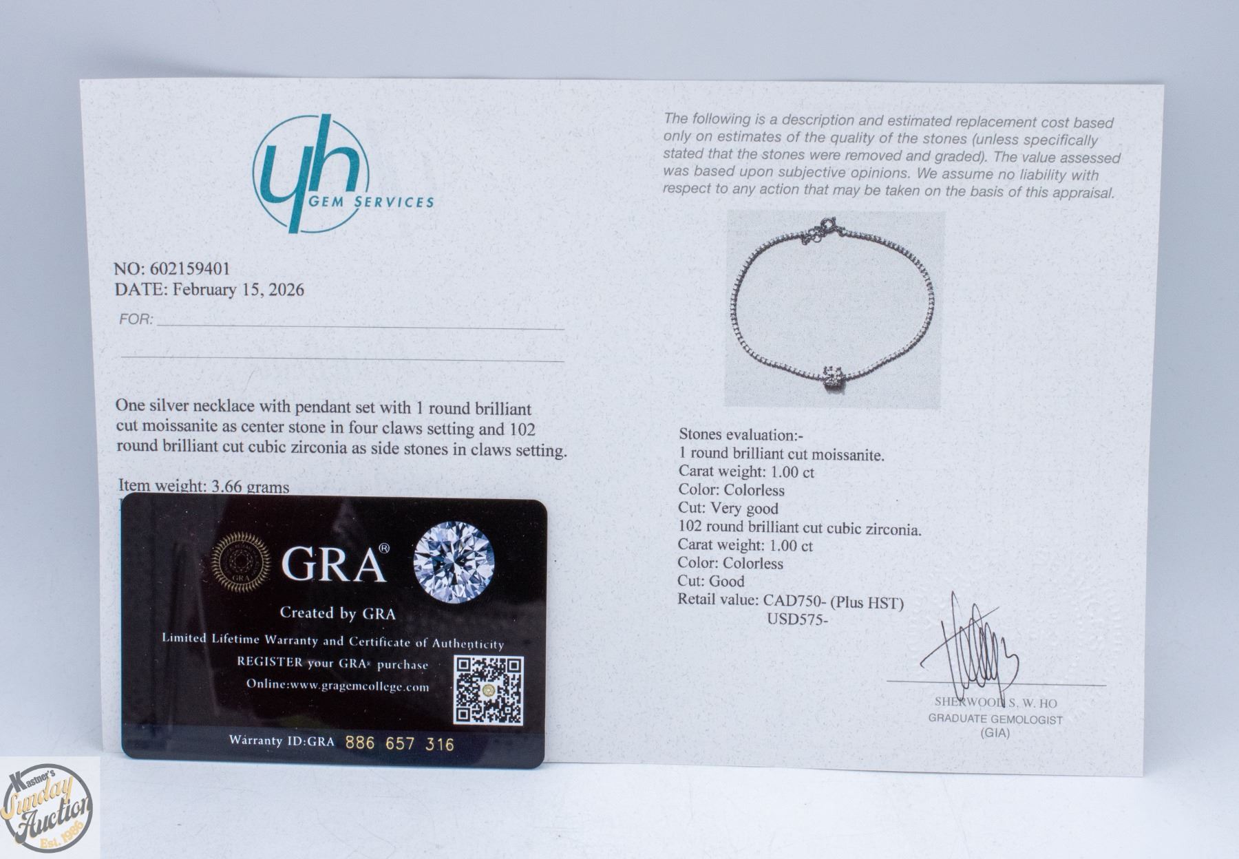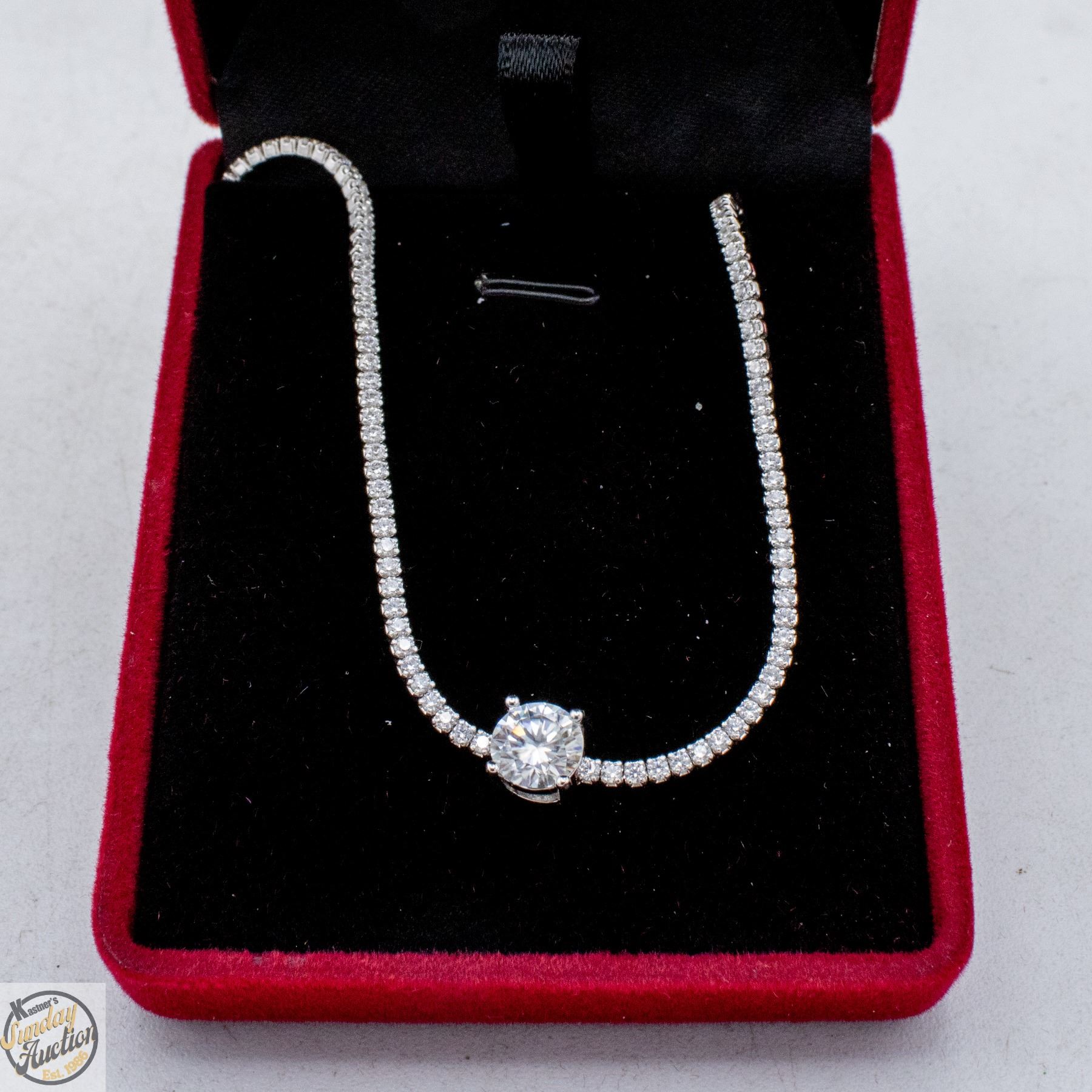 MOISSANITE STONE VVS D COLOR SET IN 4 CLAW HEAD SET IN TENNIS STYLE BRACELET WITH 102 ROUND BRILLIANT CUT CUBIC ZIRCONIA SET IN 925 SILVER BRACELET RETAIL VALUE $750.00 **ALL ITEMS MUST BE REMOVED BY 5PM SATURDAY, APRIL 11TH 2026. ALL REMAINING ITEMS WILL BE SUBJECT TO A $6.00 PER DAY STORAGE CHARGE. ANY ITEMS REMAINING AFTER MONDAY, APRIL 27TH 2026 WILL BE CONSIDERED FORFEITED. NO REFUNDS WILL BE ISSUED FOR FORFEITED ITEMS. TO SCHEDULE A PICK UP APPOINTMENT CLICK HERE