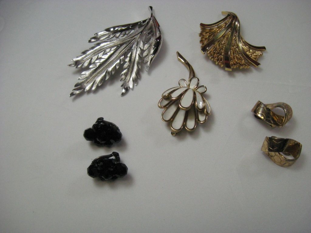 4110 - Vintage cosutume, 3 Trifari brooches with one set of matching earrings and a pair of Sherman earringsof matching earrings and a pair of Sherman earrings