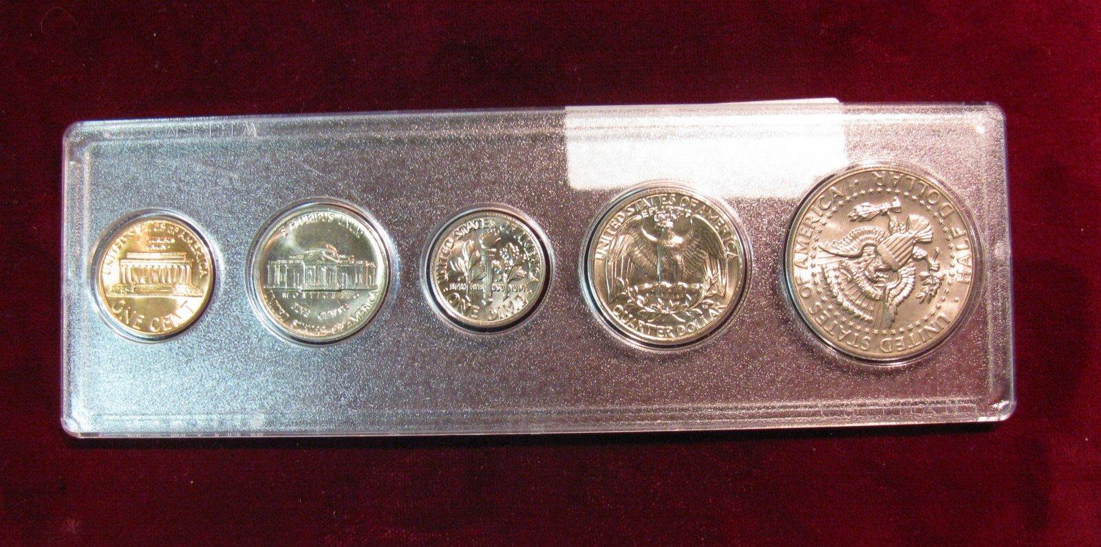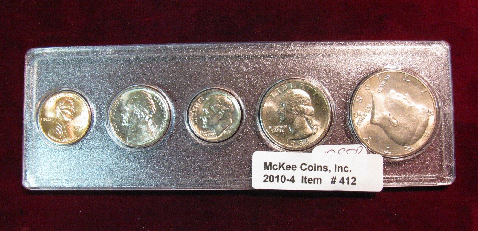 412. 1985 P 5-Piece Year Set in a Snap-tight holder. Cent to Half Dollar. Gem BU.