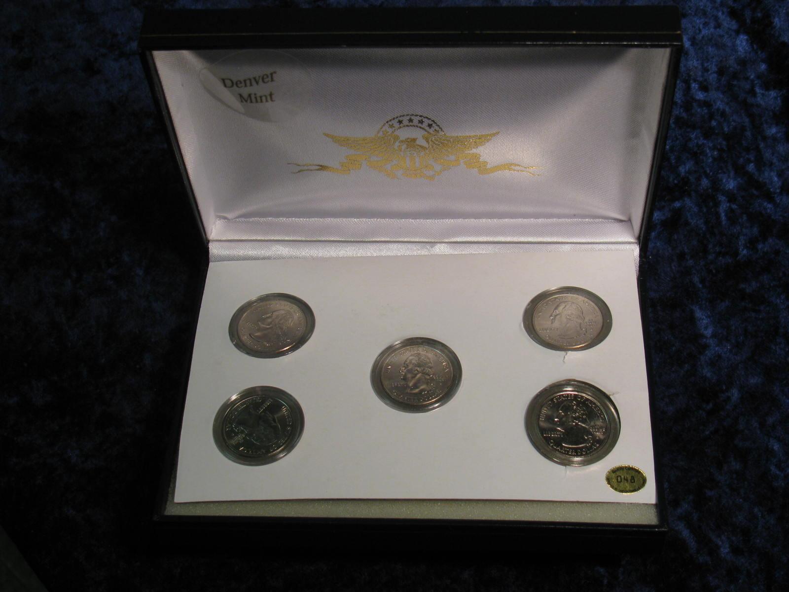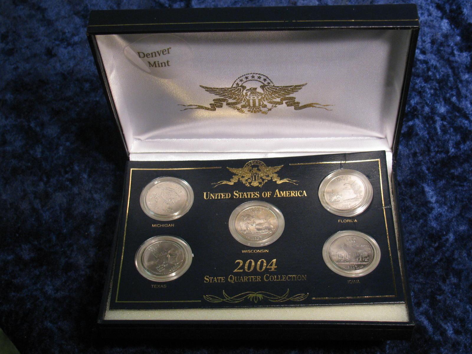 413. Boxed Set Of 2004 Statehood Quarters. Gem BU. Mixed Mints. (5 pcs.) UNC