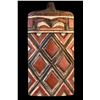 (1950s) Here is another early design carved by Bob Van Oosting during the early period when he was contributing art to the OA catalog. This finely detailed taboo shield is polychromed in native colors and has a rich, aged patina. 24"x12". VG+ with typical wear.