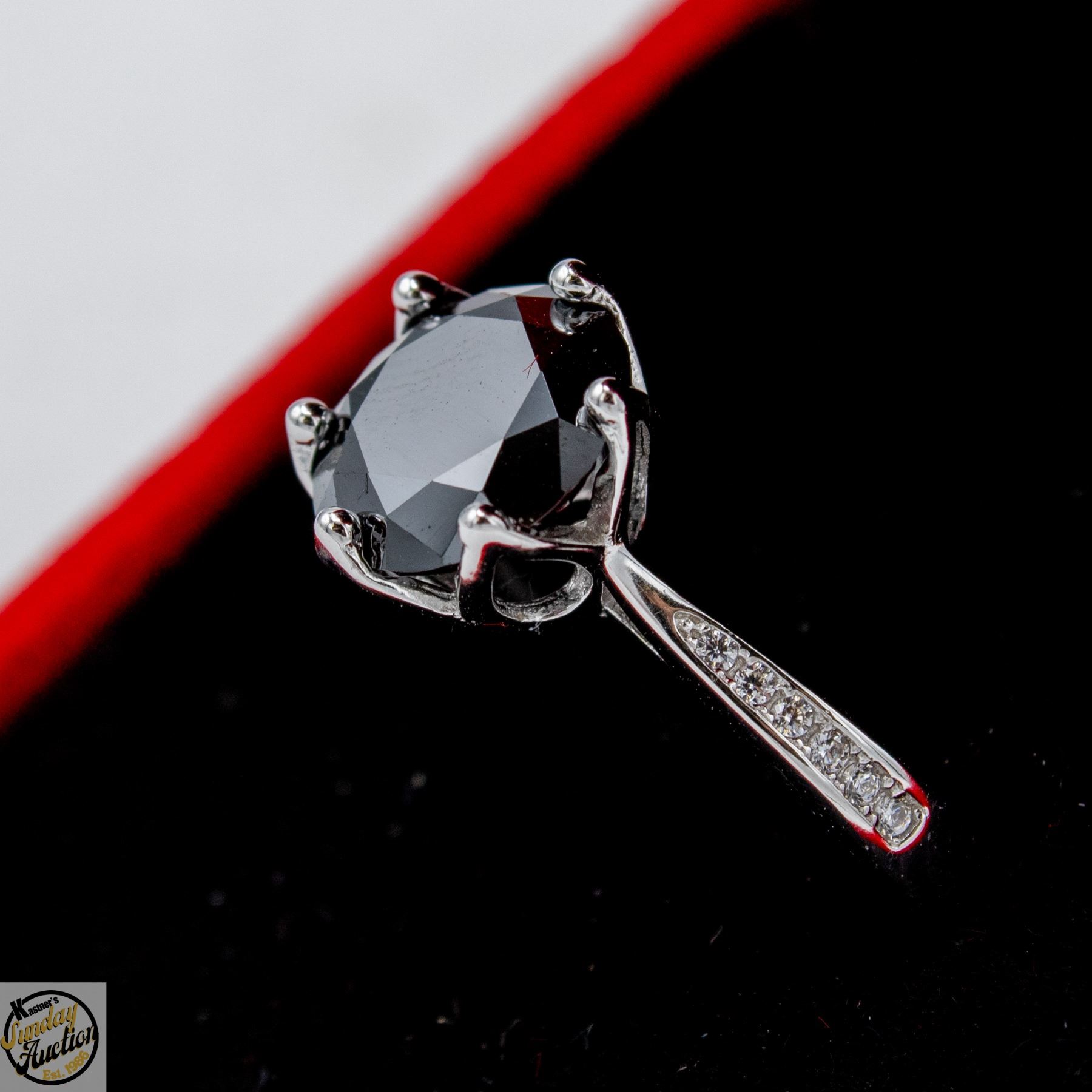 CUT MOISSANITE STONE VVS BLACK COLOR WITH 12 ROUND BRILLIANT CUT CUBIC ZIRCONIA SET IN SHANKS SET IN 925 SILVER RING SIZE 7 RETAIL VALUE $1,275.00 **ALL ITEMS MUST BE REMOVED BY 5PM SATURDAY, APRIL 18TH 2026. ALL REMAINING ITEMS WILL BE SUBJECT TO A $6.00 PER DAY STORAGE CHARGE. ANY ITEMS REMAINING AFTER MONDAY, MAY 4TH 2026 WILL BE CONSIDERED FORFEITED. NO REFUNDS WILL BE ISSUED FOR FORFEITED ITEMS. TO SCHEDULE A PICK UP APPOINTMENT CLICK HERE