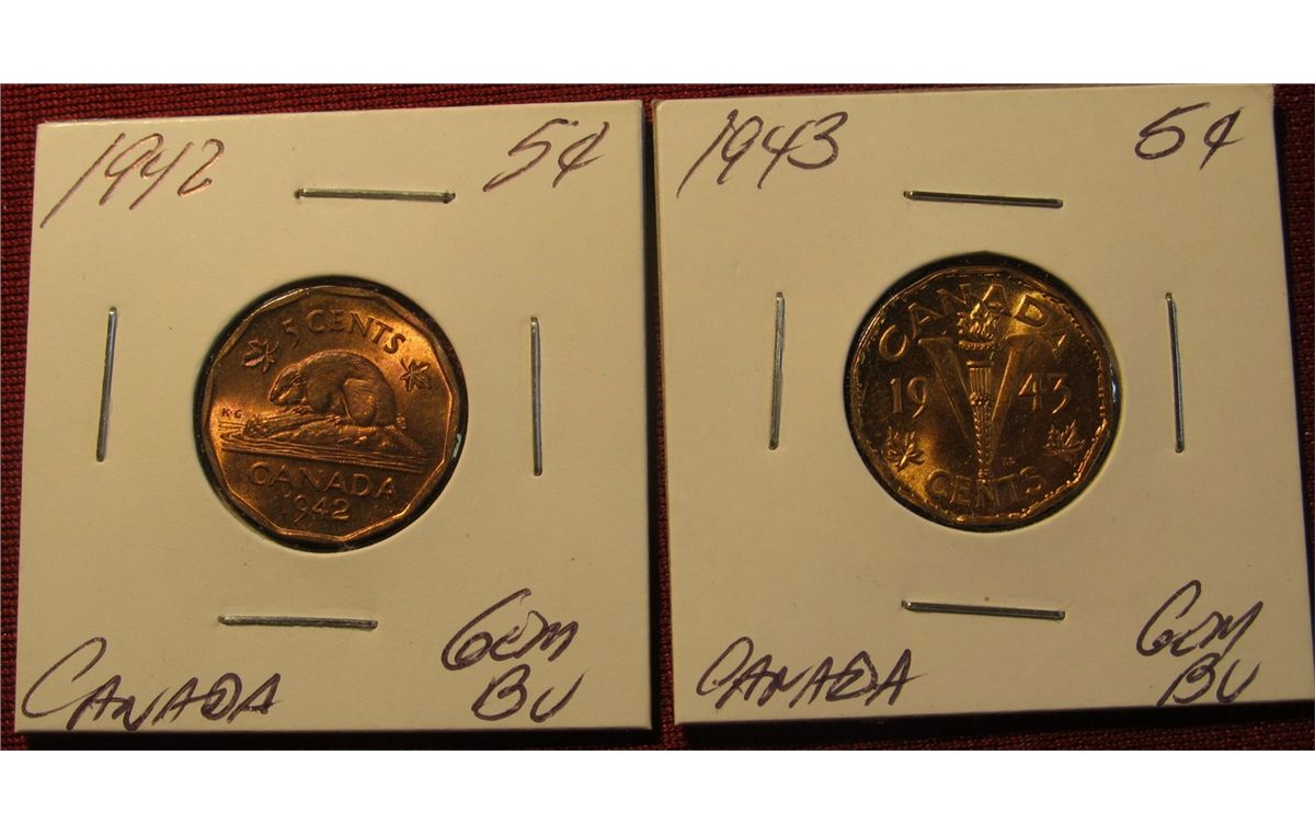 415. 1942 & 43 Canada Gem BU Nickels. (2 pcs.).