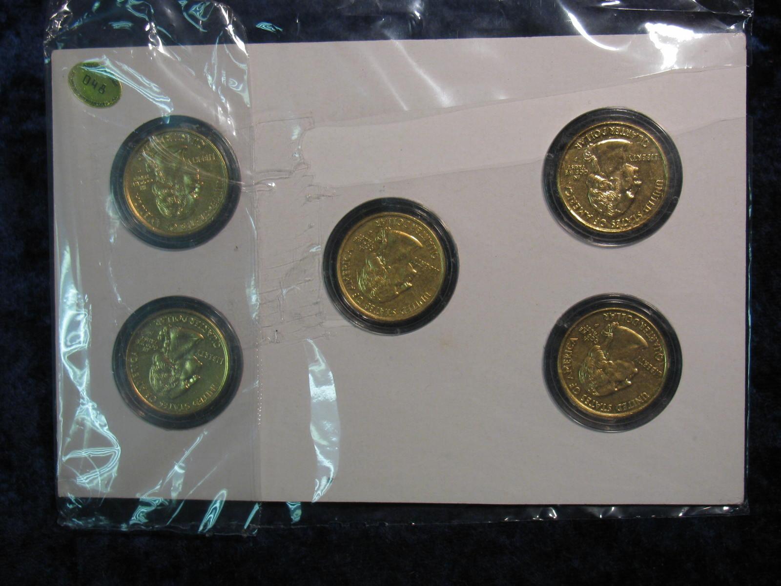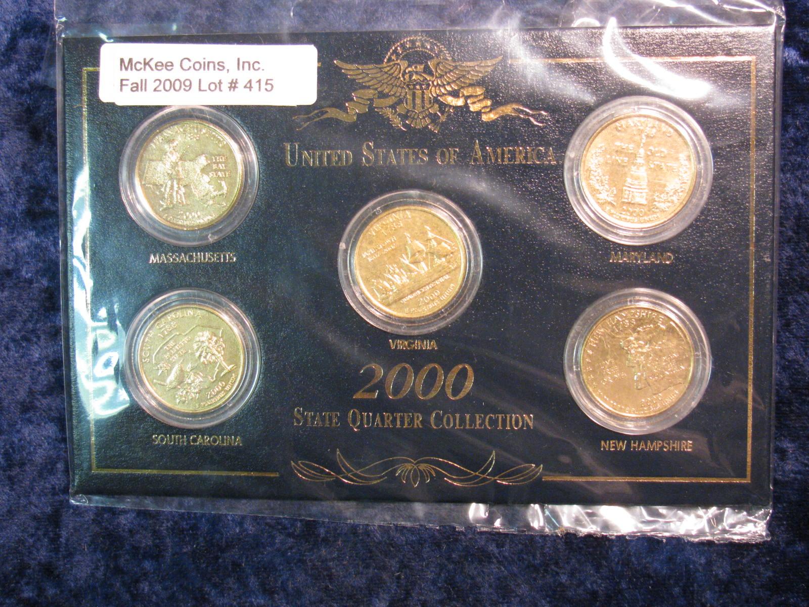 415. 24K Gold Plated 2000 Statehood Quarter Set. Mixed Mints In Display Card. (5 pcs.).