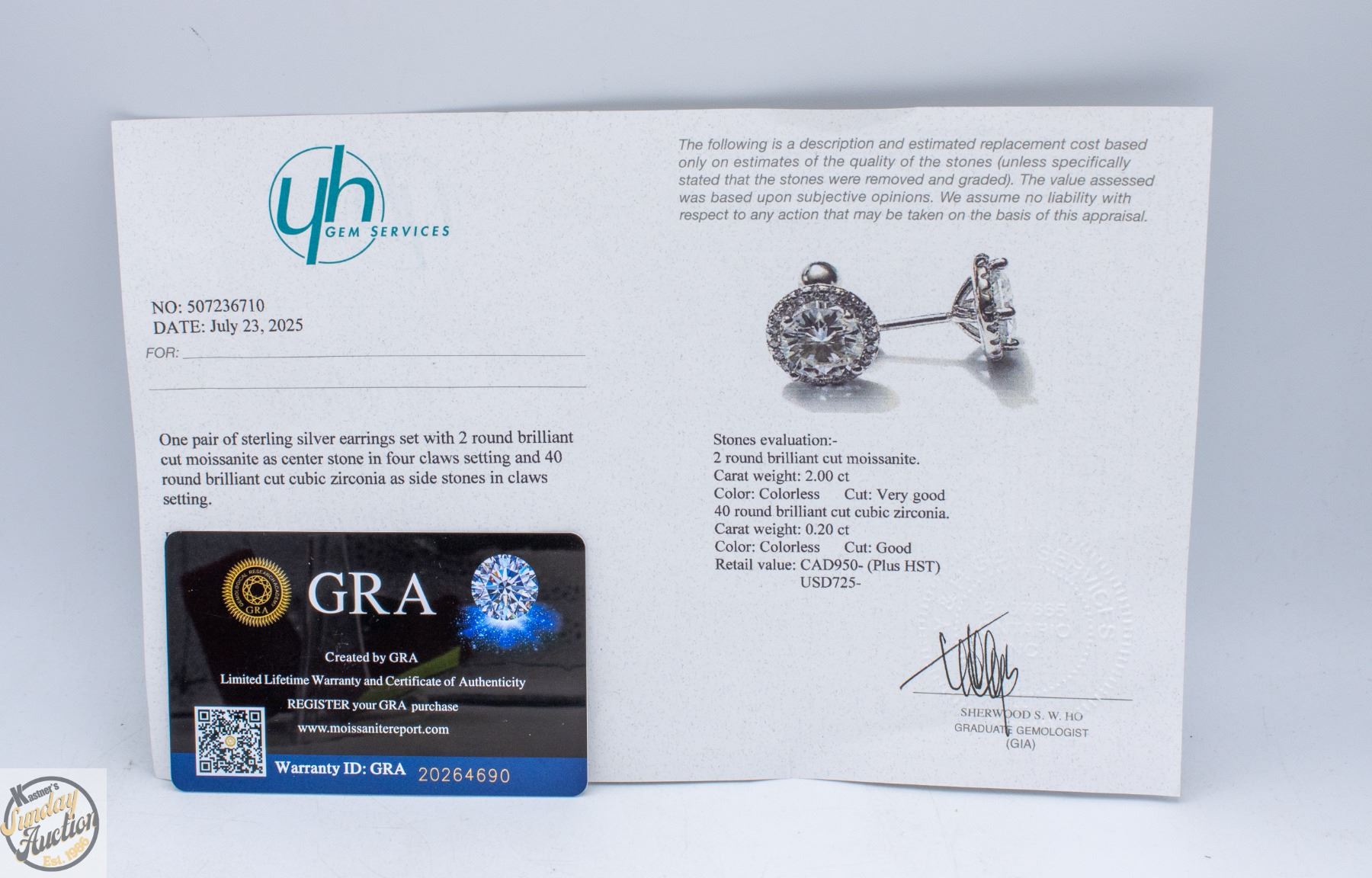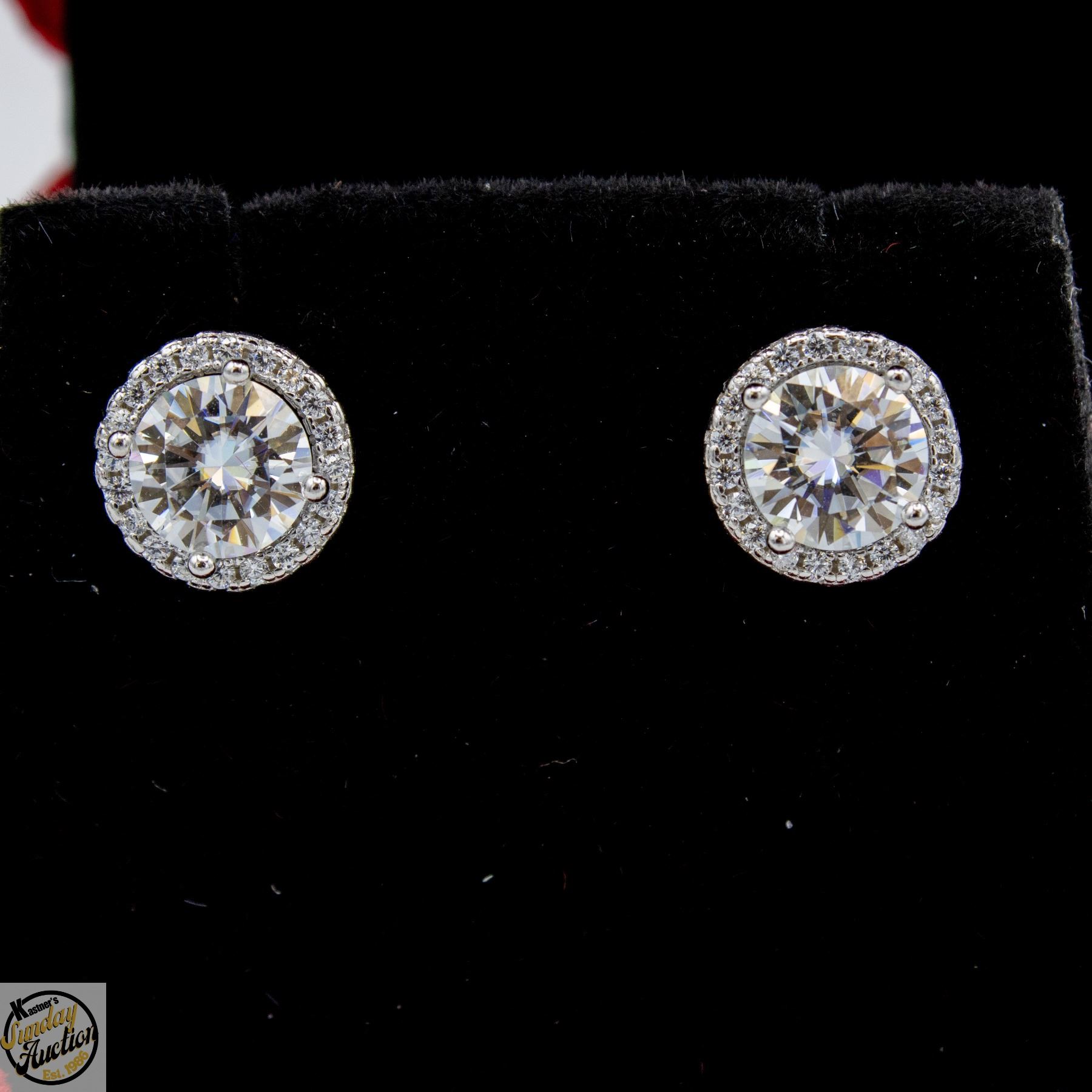 CUT MOISSANITE STONE VVS D COLOR WITH 40 ROUND BRILLIANT CUT CUBIC ZIRCONIA SET IN ROUND HALO WITH SCREW BACKS SET IN 925 SILVER EARRINGS RETAIL VALUE $950.00 **ALL ITEMS MUST BE REMOVED BY 5PM SATURDAY, APRIL 18TH 2026. ALL REMAINING ITEMS WILL BE SUBJECT TO A $6.00 PER DAY STORAGE CHARGE. ANY ITEMS REMAINING AFTER MONDAY, MAY 4TH 2026 WILL BE CONSIDERED FORFEITED. NO REFUNDS WILL BE ISSUED FOR FORFEITED ITEMS. TO SCHEDULE A PICK UP APPOINTMENT CLICK HERE