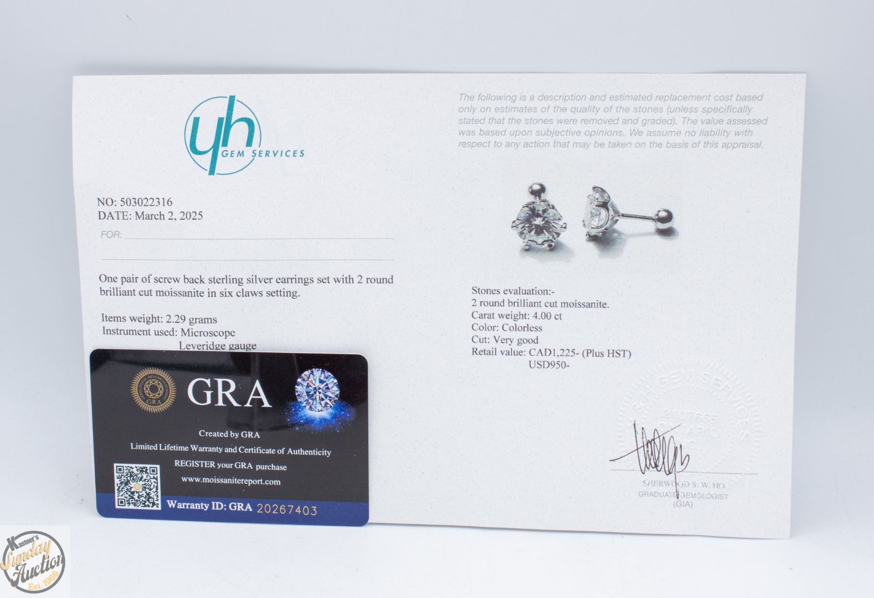CUT MOISSANITE STONES VVS D COLOR SET IN 6 CLAW FILAGREE BASKET HEAD SET IN 925 SILVER EARRINGS WITH SCREW BACKS RETAIL VALUE $1,225.00 **ALL ITEMS MUST BE REMOVED BY 5PM SATURDAY, APRIL 18TH 2026. ALL REMAINING ITEMS WILL BE SUBJECT TO A $6.00 PER DAY STORAGE CHARGE. ANY ITEMS REMAINING AFTER MONDAY, MAY 4TH 2026 WILL BE CONSIDERED FORFEITED. NO REFUNDS WILL BE ISSUED FOR FORFEITED ITEMS. TO SCHEDULE A PICK UP APPOINTMENT CLICK HERE