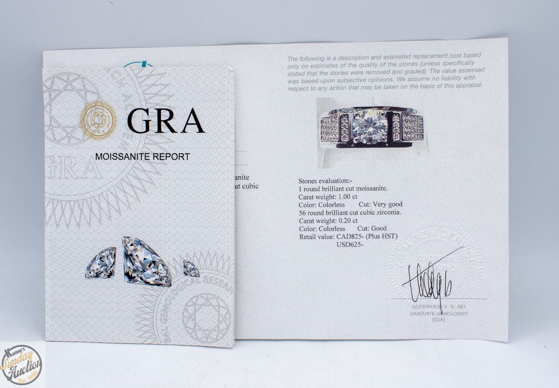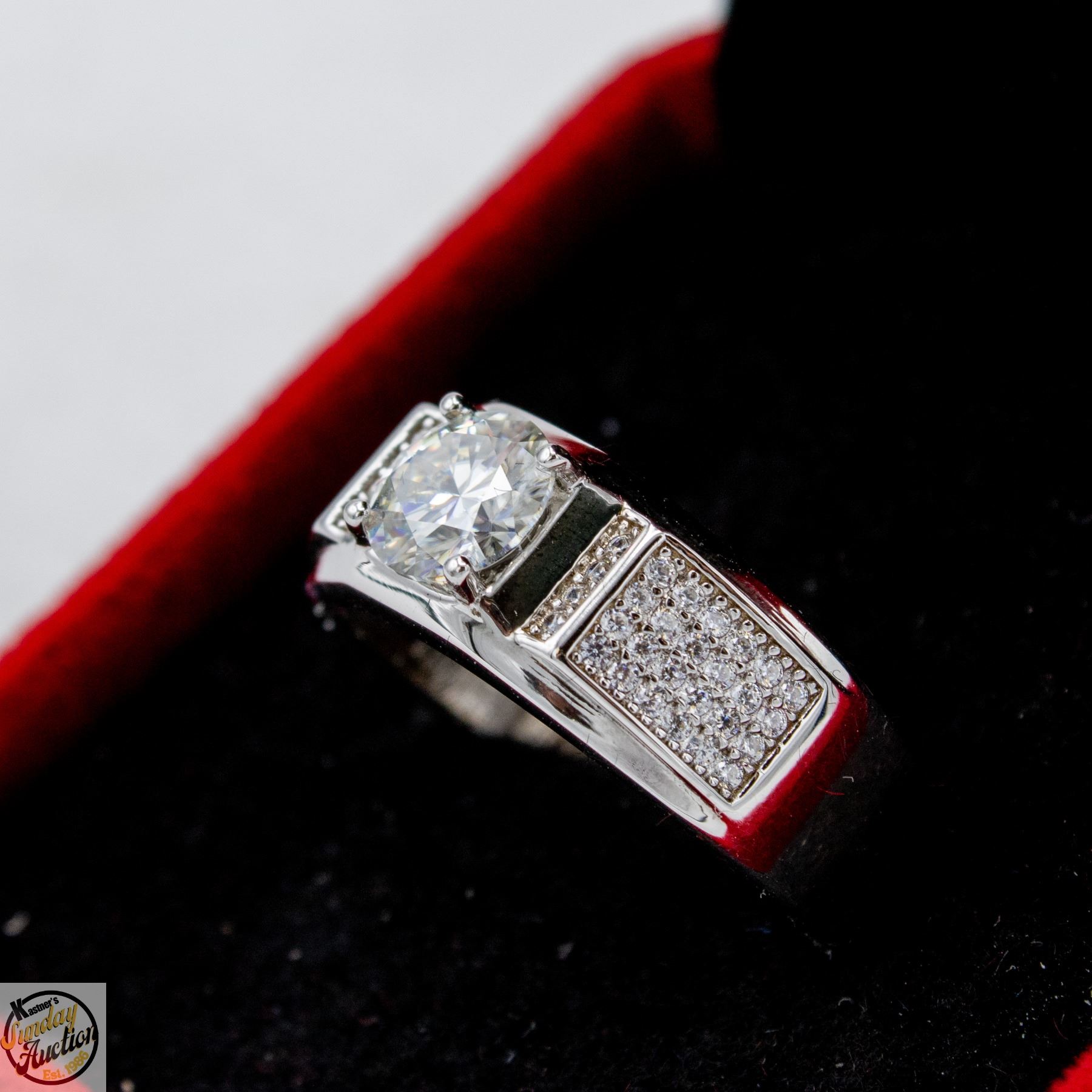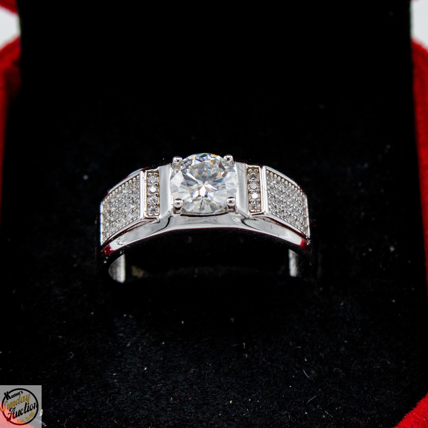 CUT MOISSANITE STONE VVS D COLOR WITH 56 ROUND BRILLIANT CUT CUBIC ZIRCONIA SET 4 IN ROW RIGHT BESIDE CENTER WITH THE REST ON SIDE SHANKS SET IN 925 SILVER RING SIZE 9 RETAIL VALUE $825.00 **ALL ITEMS MUST BE REMOVED BY 5PM SATURDAY, APRIL 18TH 2026. ALL REMAINING ITEMS WILL BE SUBJECT TO A $6.00 PER DAY STORAGE CHARGE. ANY ITEMS REMAINING AFTER MONDAY, MAY 4TH 2026 WILL BE CONSIDERED FORFEITED. NO REFUNDS WILL BE ISSUED FOR FORFEITED ITEMS. TO SCHEDULE A PICK UP APPOINTMENT CLICK HERE