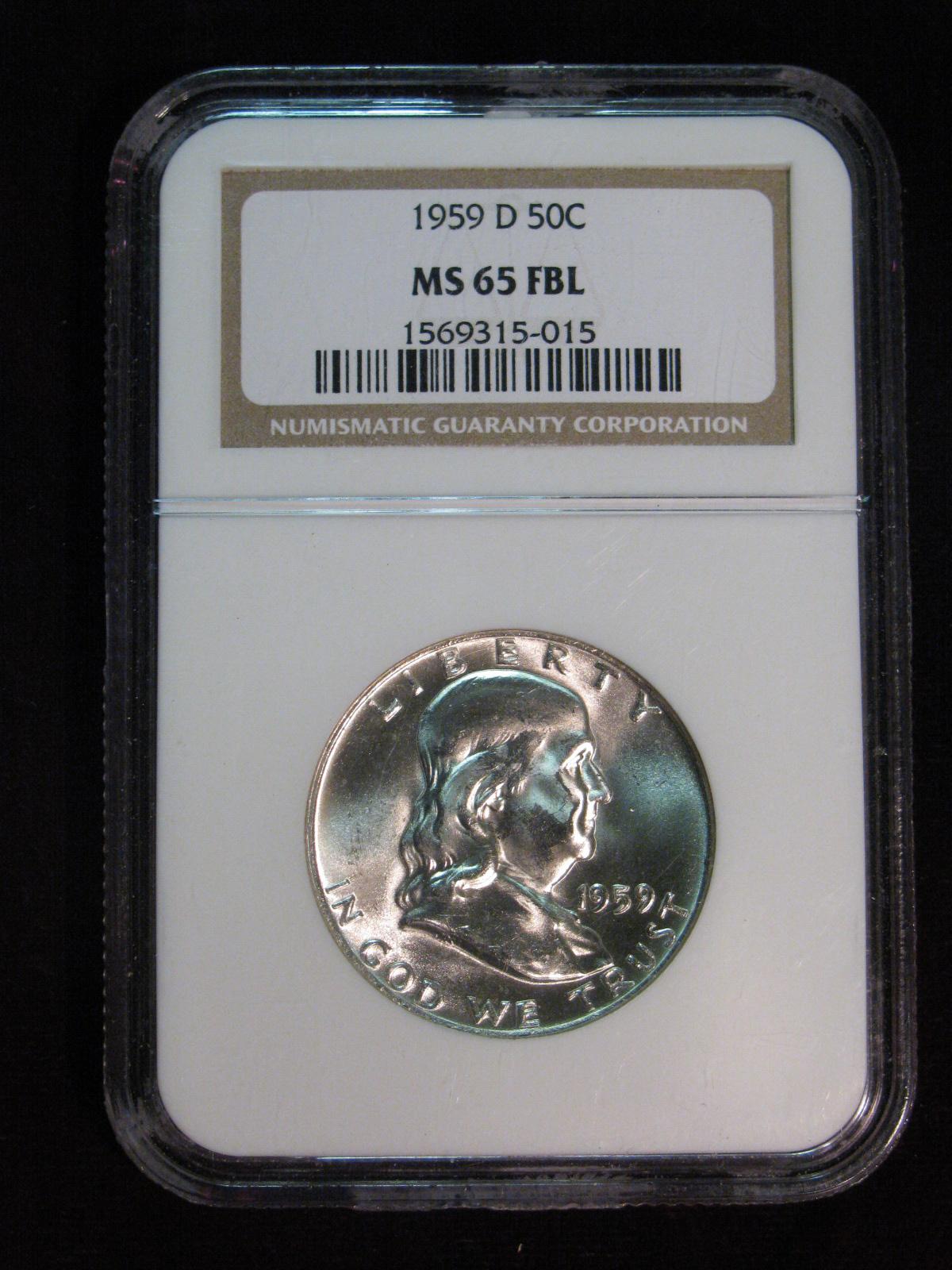 416. 1959 D Franklin Half Dollar. NGC slabbed MS 65 FBL.