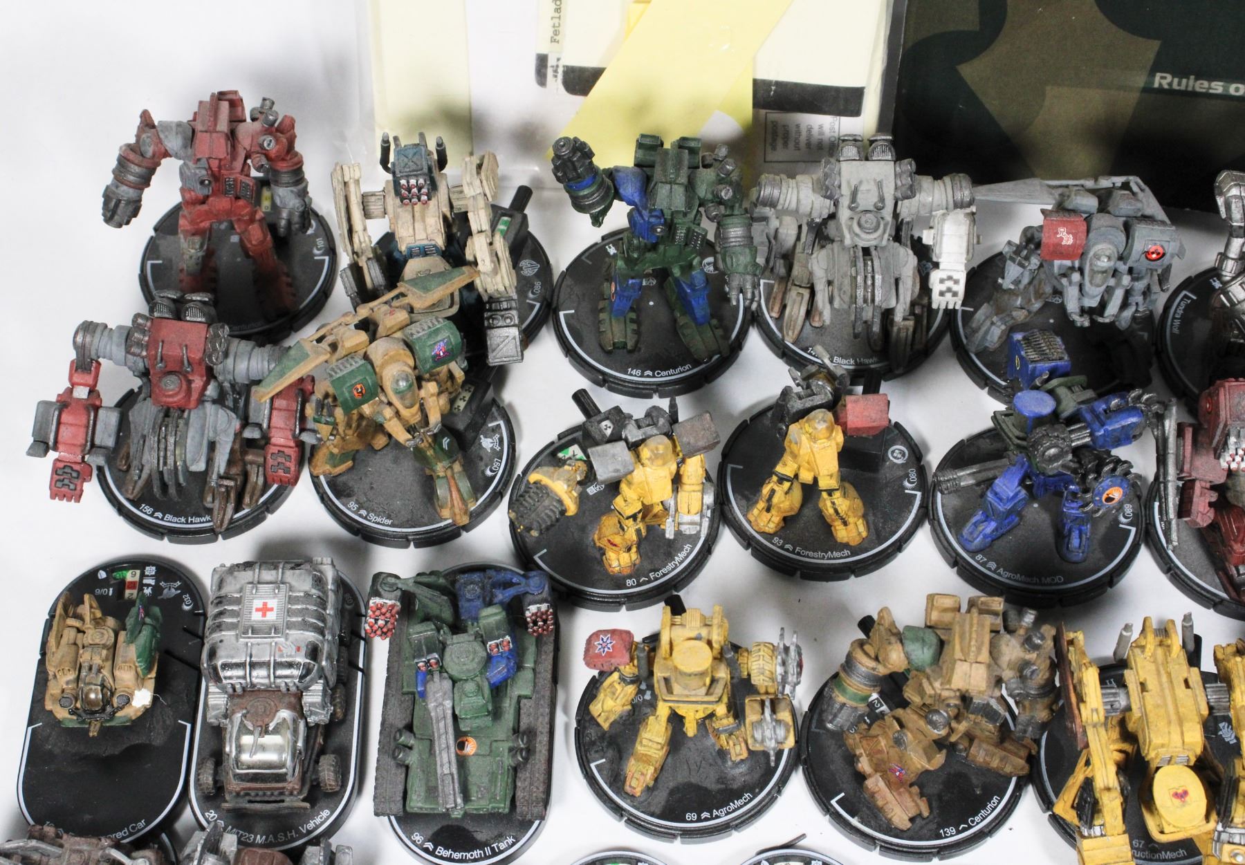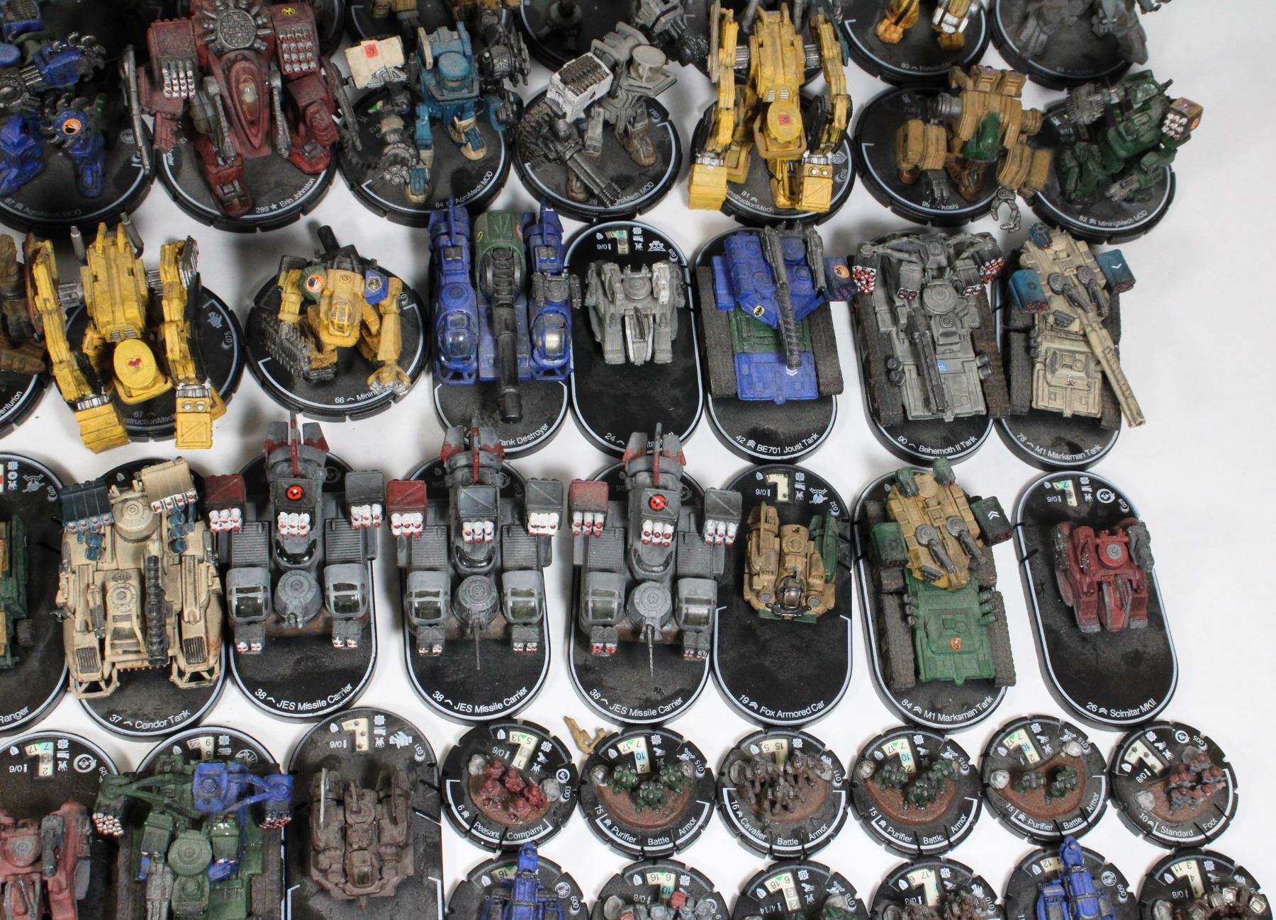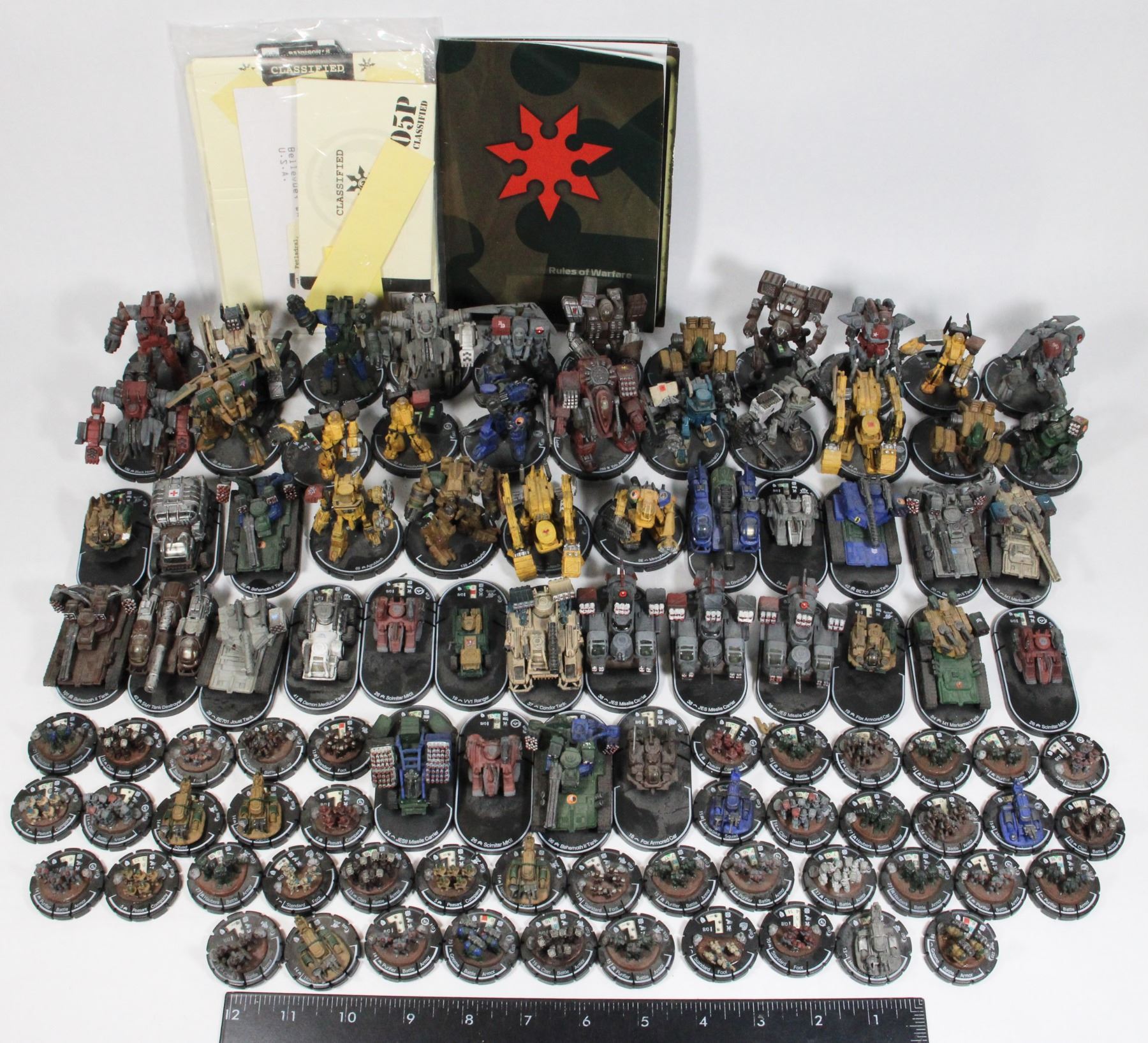 2002 WIZKIDS HEROCLIX LOT OF 96 VEHICLES MECHS TANKS ETC INCLUDING CLASSIFIED PAPERS DOCUMENTS RULEBOOK ETC RPG GAME