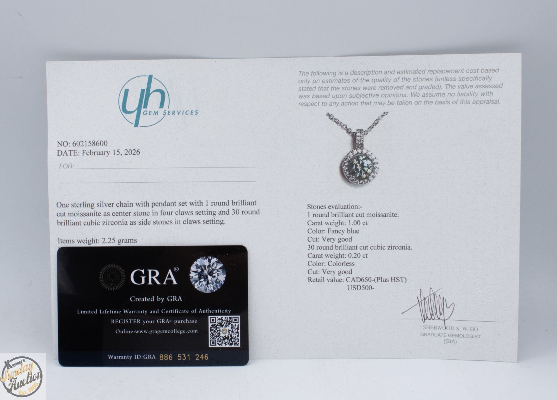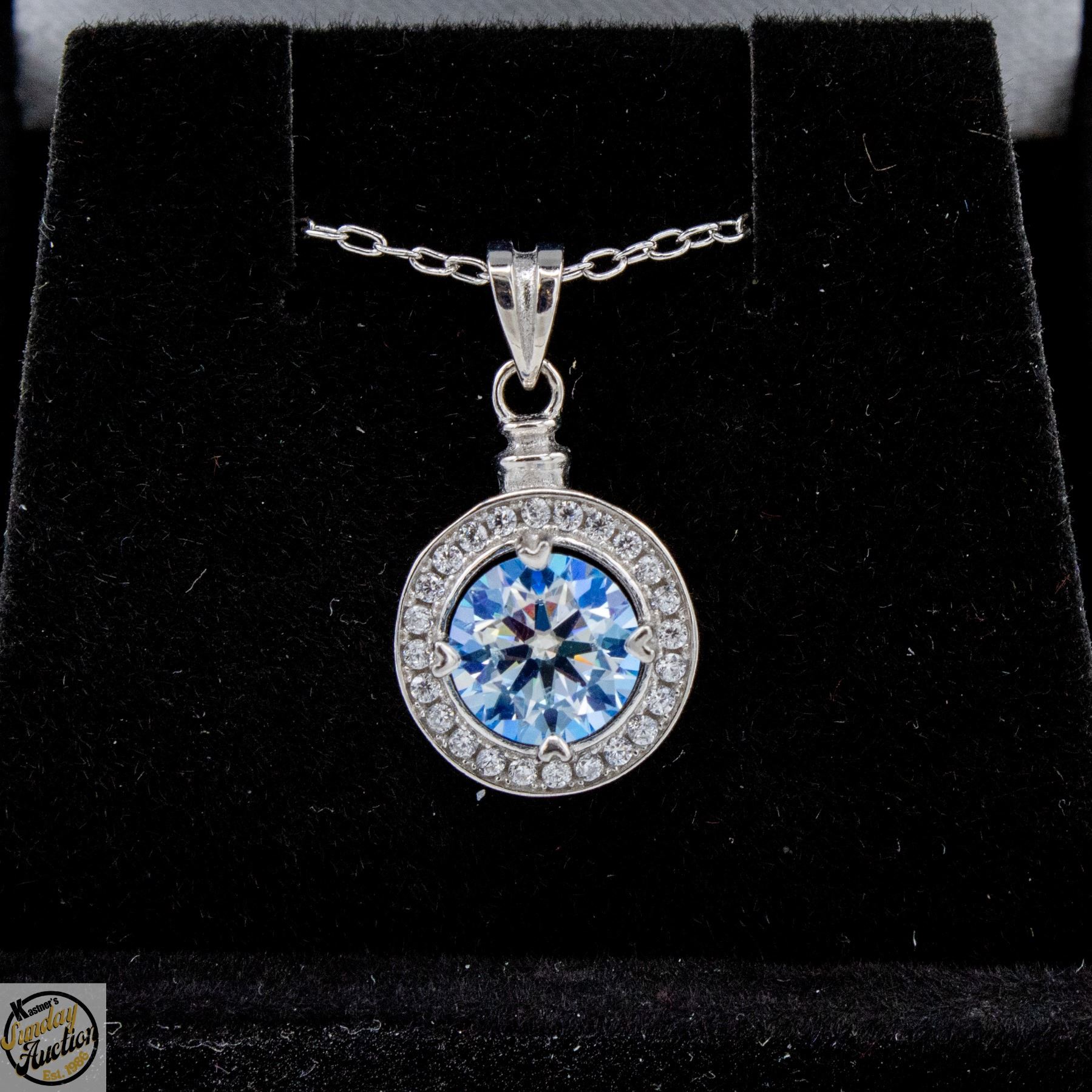 BRILLIANT CUT MOISSANITE STONE VVS FANCY BLUE COLOR WITH 30 ROUND BRILLIANT CUT CUBIC ZIRCONIA SET IN ROUND HALO SET IN 925 SILVER PENDANT RETAIL VALUE $650.00 **ALL ITEMS MUST BE REMOVED BY 5PM SATURDAY, APRIL 25TH 2026. ALL REMAINING ITEMS WILL BE SUBJECT TO A $6.00 PER DAY STORAGE CHARGE. ANY ITEMS REMAINING AFTER MONDAY, MAY 11TH 2026 WILL BE CONSIDERED FORFEITED. NO REFUNDS WILL BE ISSUED FOR FORFEITED ITEMS. TO SCHEDULE A PICK UP APPOINTMENT CLICK HERE
