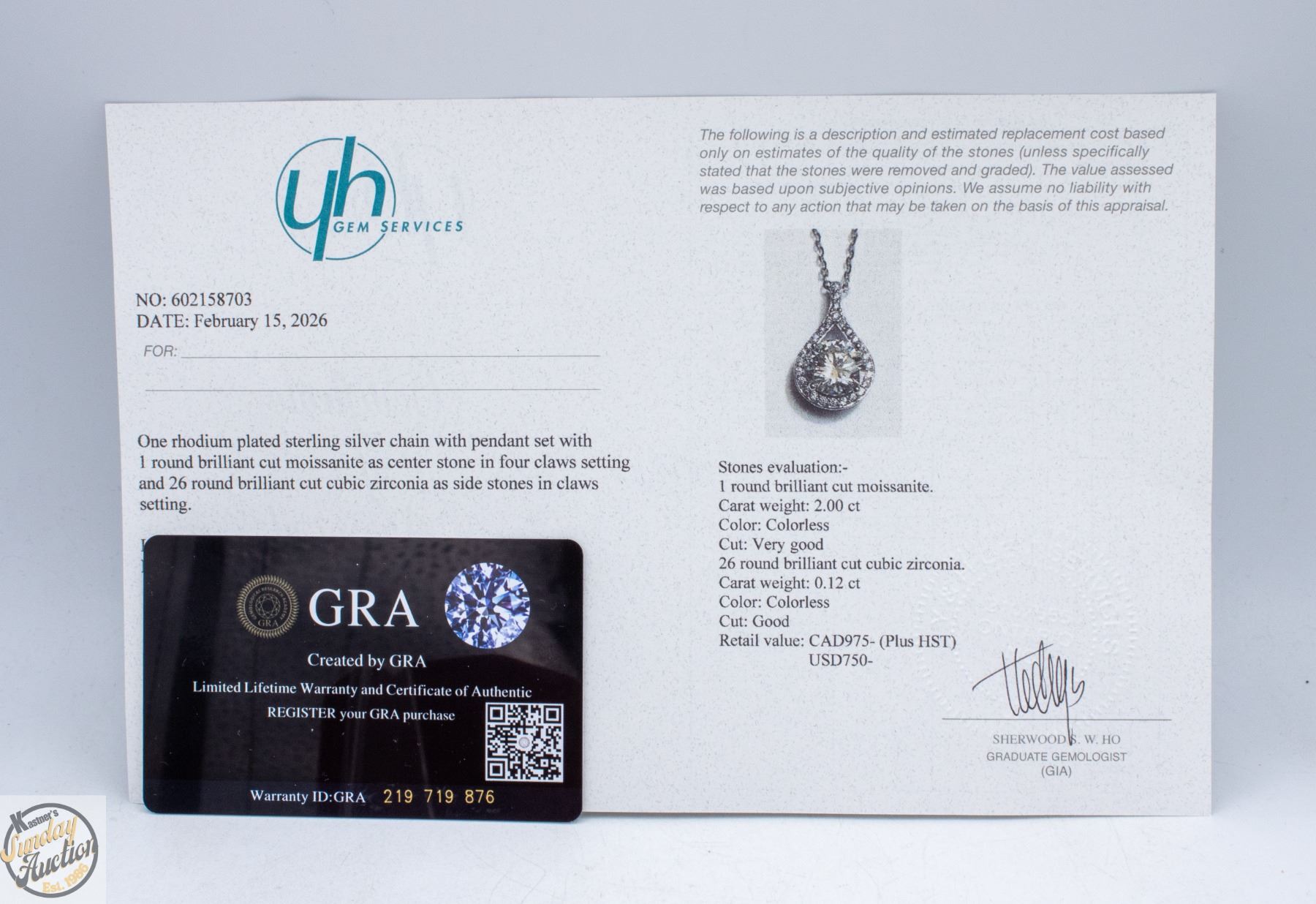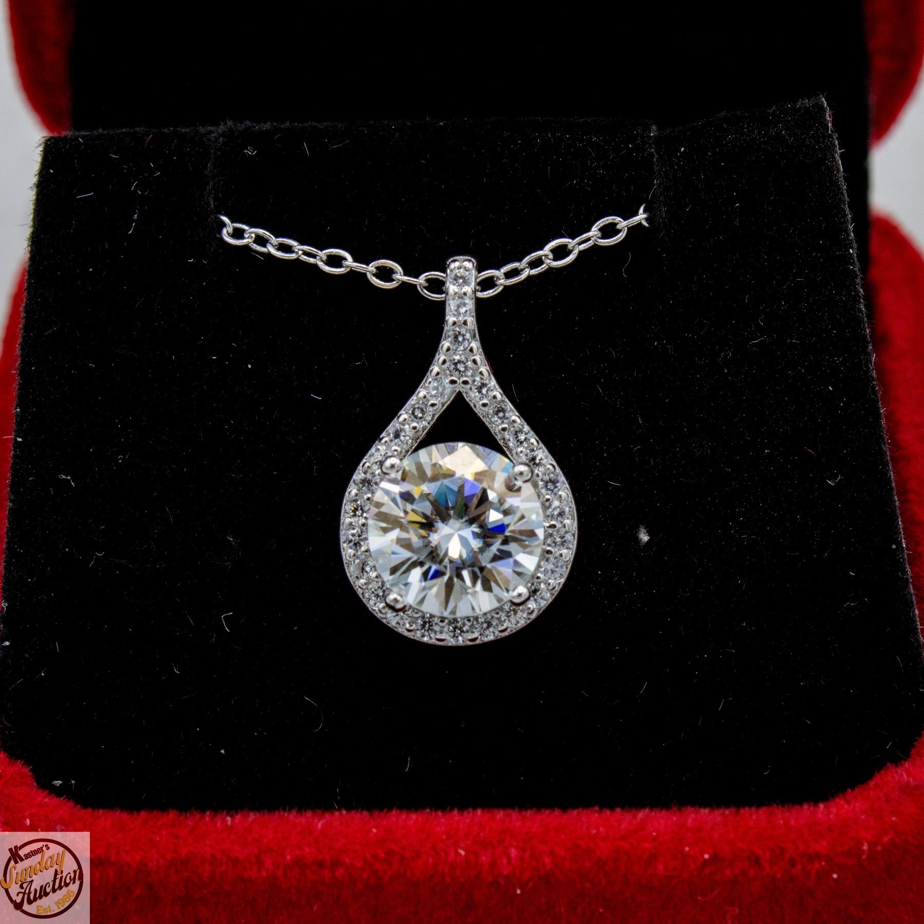 BRILLIANT CUT MOISSANITE STONE VVS D COLOR WITH 26 ROUND BRILLIANT CUT CUBIC ZIRCONIA SET IN TEAR DROP HALO SET IN 925 SILVER PENDANT RETAIL VALUE $975.00 **ALL ITEMS MUST BE REMOVED BY 5PM SATURDAY, APRIL 25TH 2026. ALL REMAINING ITEMS WILL BE SUBJECT TO A $6.00 PER DAY STORAGE CHARGE. ANY ITEMS REMAINING AFTER MONDAY, MAY 11TH 2026 WILL BE CONSIDERED FORFEITED. NO REFUNDS WILL BE ISSUED FOR FORFEITED ITEMS. TO SCHEDULE A PICK UP APPOINTMENT CLICK HERE