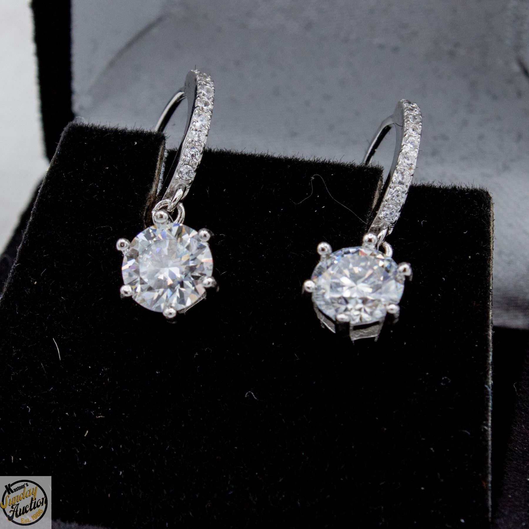 BRILLIANT CUT MOISSANITE STONES VVS D COLOR DANGLING AND SET IN 6 CLAW HEAD WITH 9 ROUND BRILLIANT CUT CUBIC ZIRCONIA IN EACH HOOP SET IN 925 SILVER EARRINGS **ALL ITEMS MUST BE REMOVED BY 5PM SATURDAY, APRIL 25TH 2026. ALL REMAINING ITEMS WILL BE SUBJECT TO A $6.00 PER DAY STORAGE CHARGE. ANY ITEMS REMAINING AFTER MONDAY, MAY 11TH 2026 WILL BE CONSIDERED FORFEITED. NO REFUNDS WILL BE ISSUED FOR FORFEITED ITEMS. TO SCHEDULE A PICK UP APPOINTMENT CLICK HERE