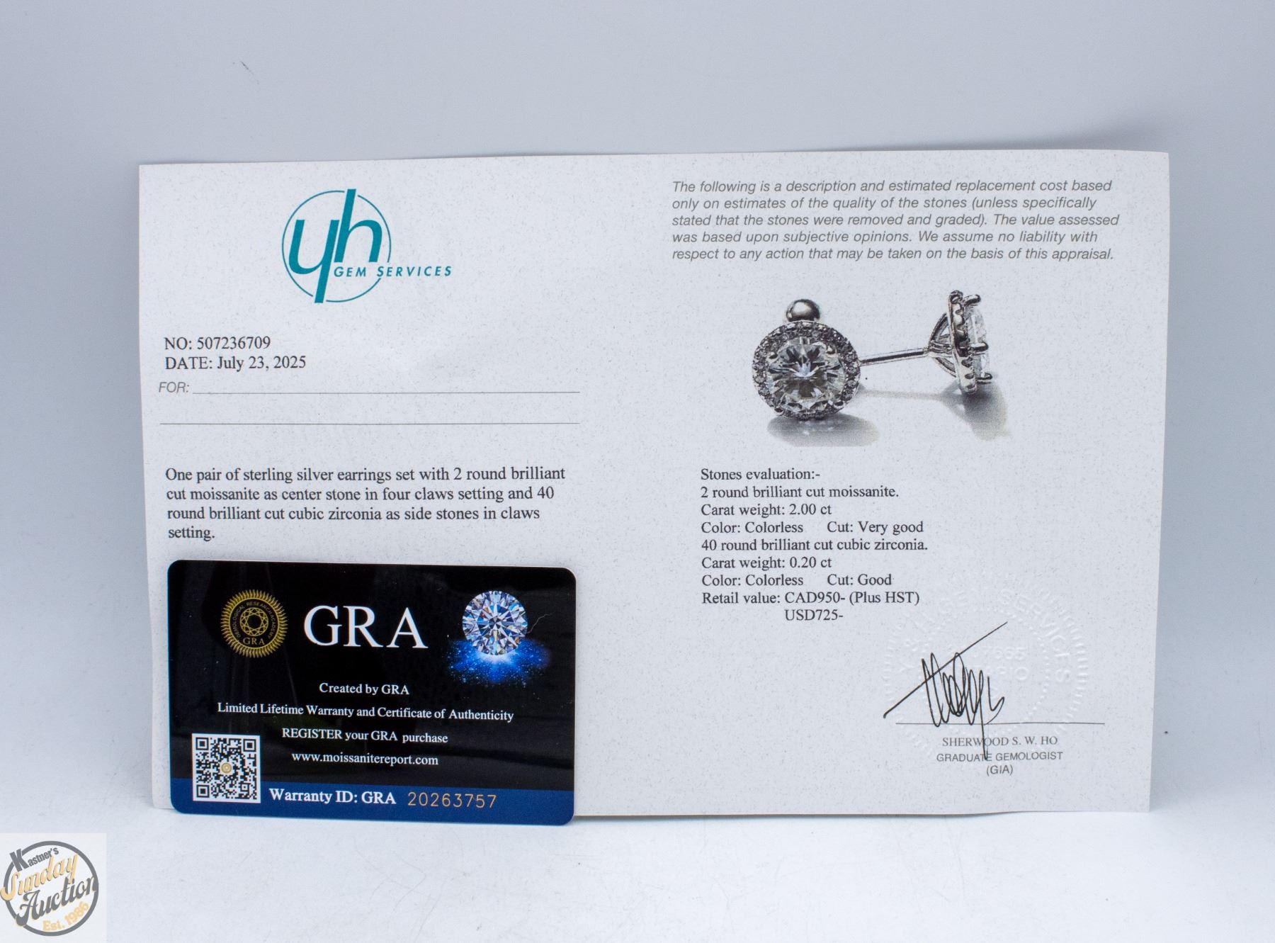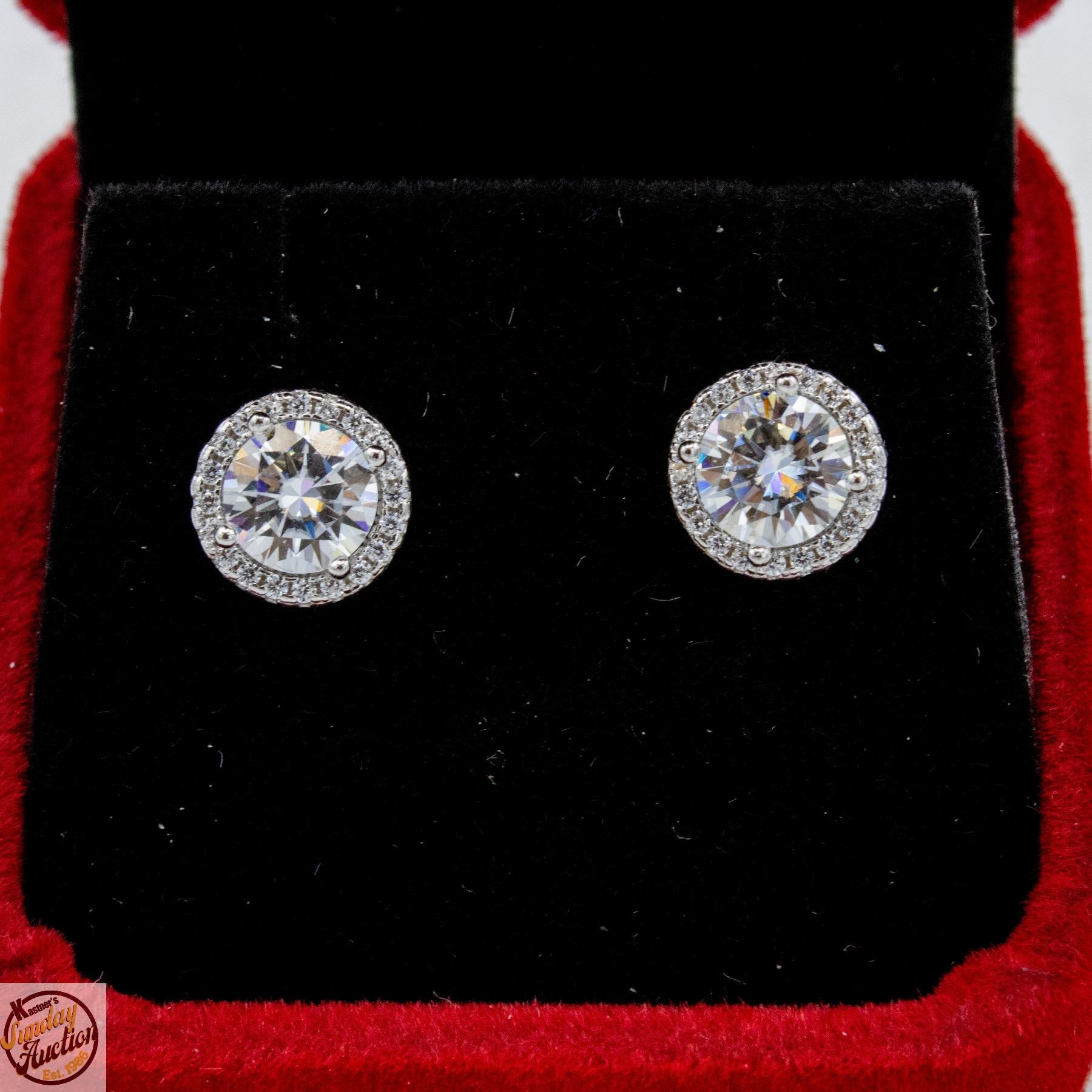 BRILLIANT CUT MOISSANITE STONE VVS D COLOR WITH 40 ROUND BRILLIANT CUT CUBIC ZIRCONIA SET IN ROUND HALO WITH SCREW BACKS SET IN 925 SILVER EARRINGS RETAIL VALUE $950.00 **ALL ITEMS MUST BE REMOVED BY 5PM SATURDAY, APRIL 25TH 2026. ALL REMAINING ITEMS WILL BE SUBJECT TO A $6.00 PER DAY STORAGE CHARGE. ANY ITEMS REMAINING AFTER MONDAY, MAY 11TH 2026 WILL BE CONSIDERED FORFEITED. NO REFUNDS WILL BE ISSUED FOR FORFEITED ITEMS. TO SCHEDULE A PICK UP APPOINTMENT CLICK HERE