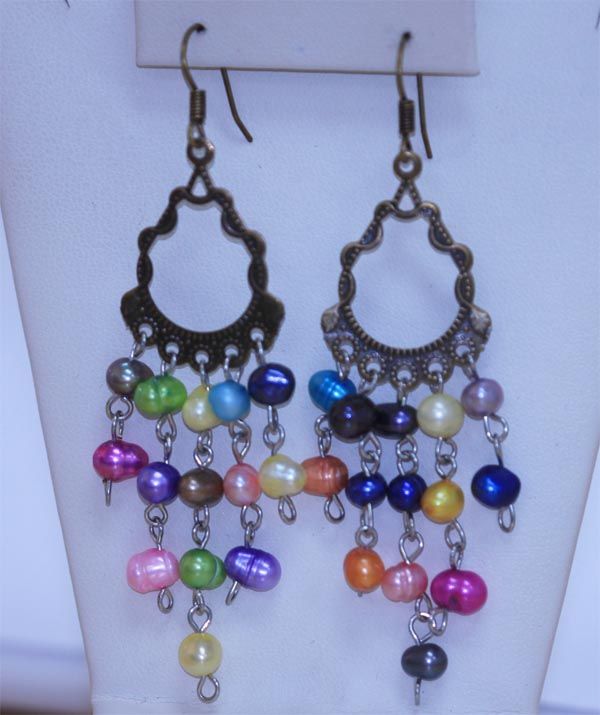 42.25 CTW MULTICOLOR PEARL DANGLING EARRING **|**|** 42.25 CTW MULTICOLOR PEARL DANGLING EARRING ; MSRP: $200