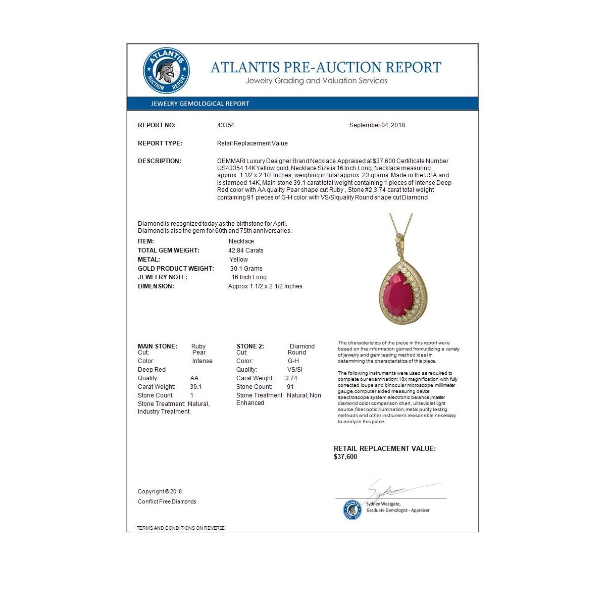 42.84 ctw Ruby & Diamond Necklace 14K Yellow Gold