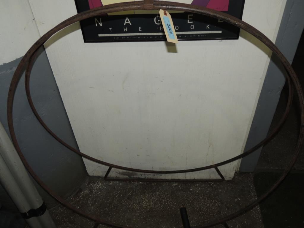 CIRCLE ROUND IRON FIRE LOG STORAGE, OUTDOOR, INDOOR STARAGE, LARGE STORAGE AS SHOWN SEE PHOTO FOR MORE DETAILS.