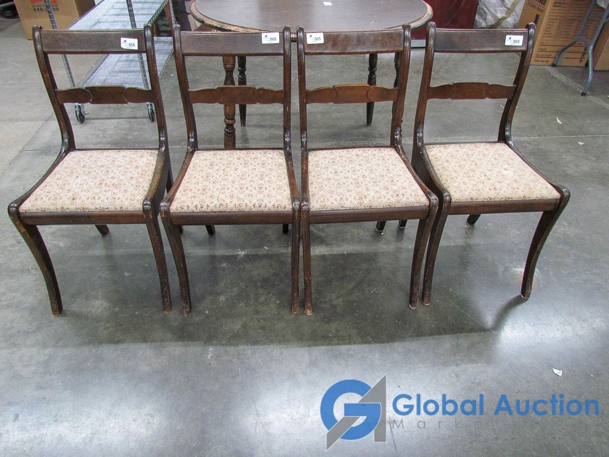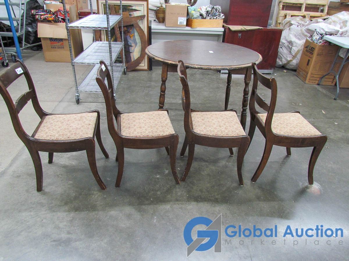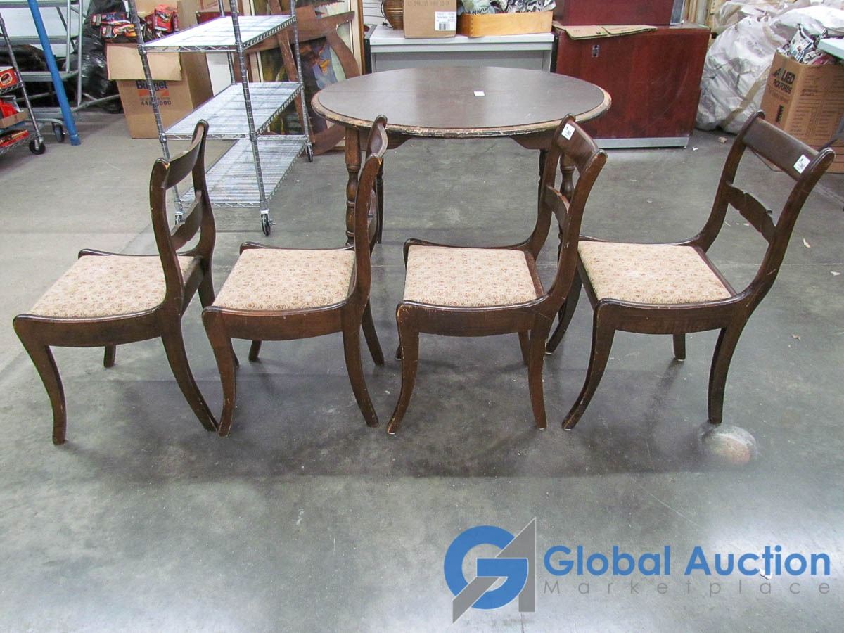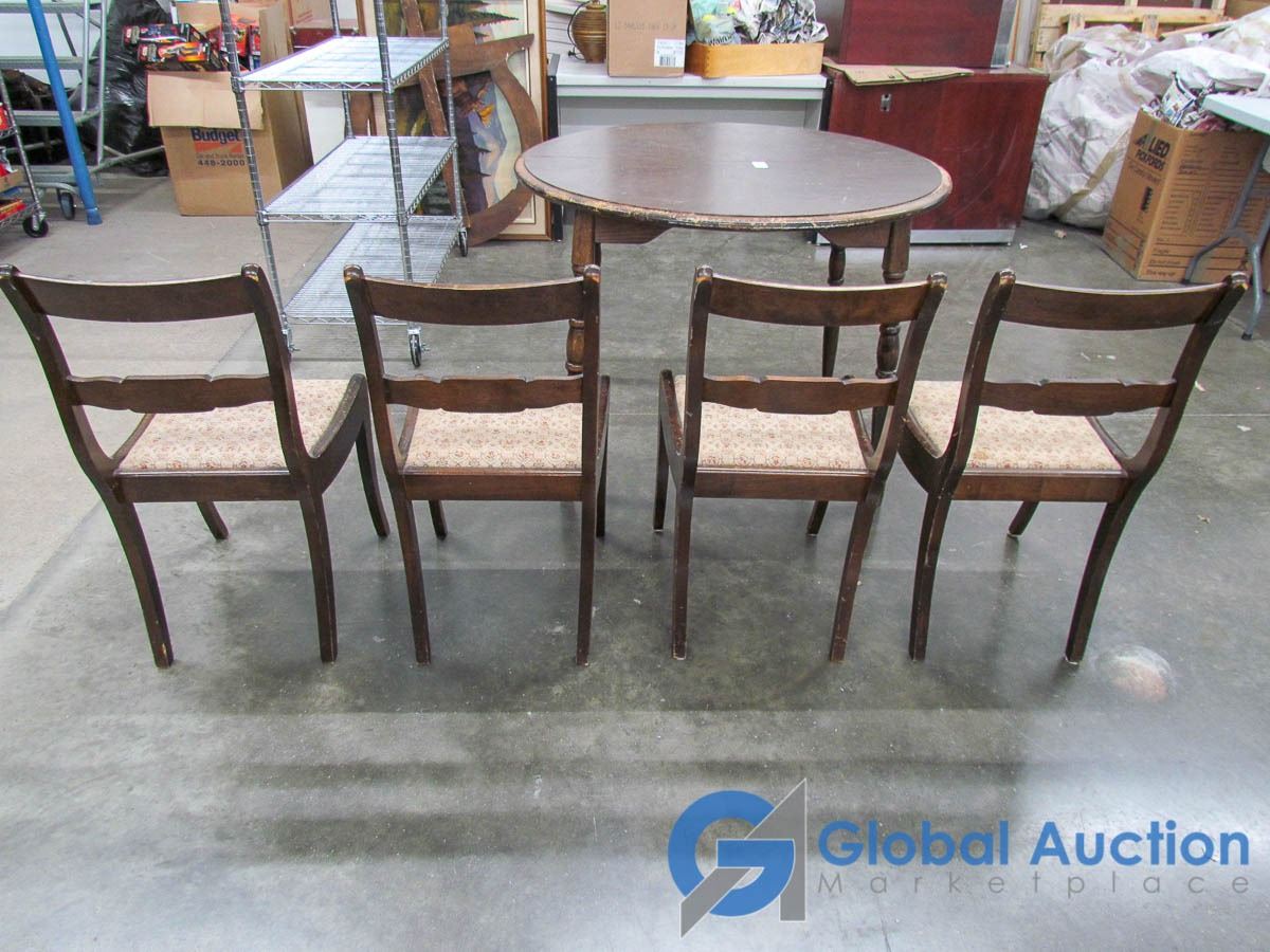42" Round Wooden Table & 4 Wooden/Fabric Kitchen Chairs
