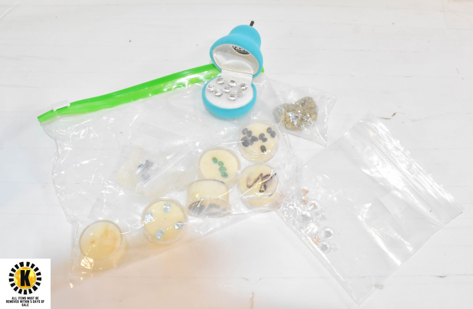 #42 SMALL BOX OF ASSORTED LOOSE GEMSTONES & MORE