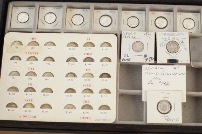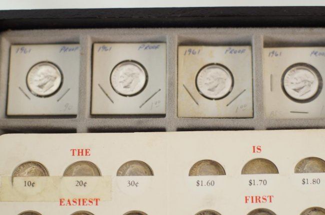 Roosevelt seated, plus 30 Truman dimes in book, (42) pus 8 - 1961 proofs, 1964D uncirculated dime Roosevelt