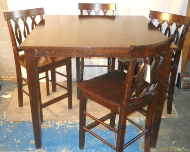 42"x42"x36" WOOD TABLE WITH 4 MATCHING CHAIRS