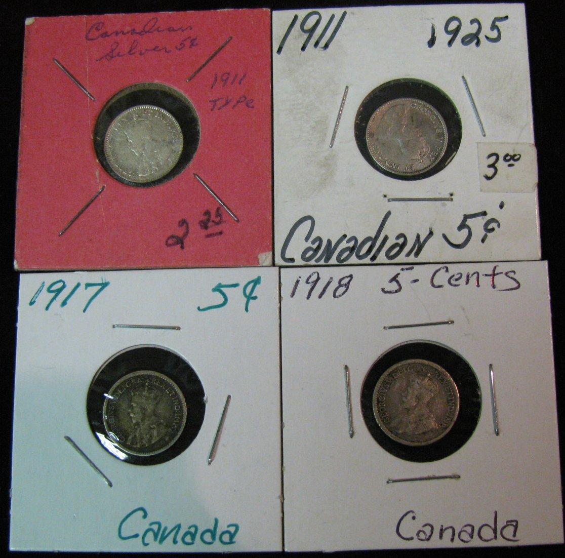 420. (2) 1911, 17, & 18 Canada Five Cent Silvers. VG-F.