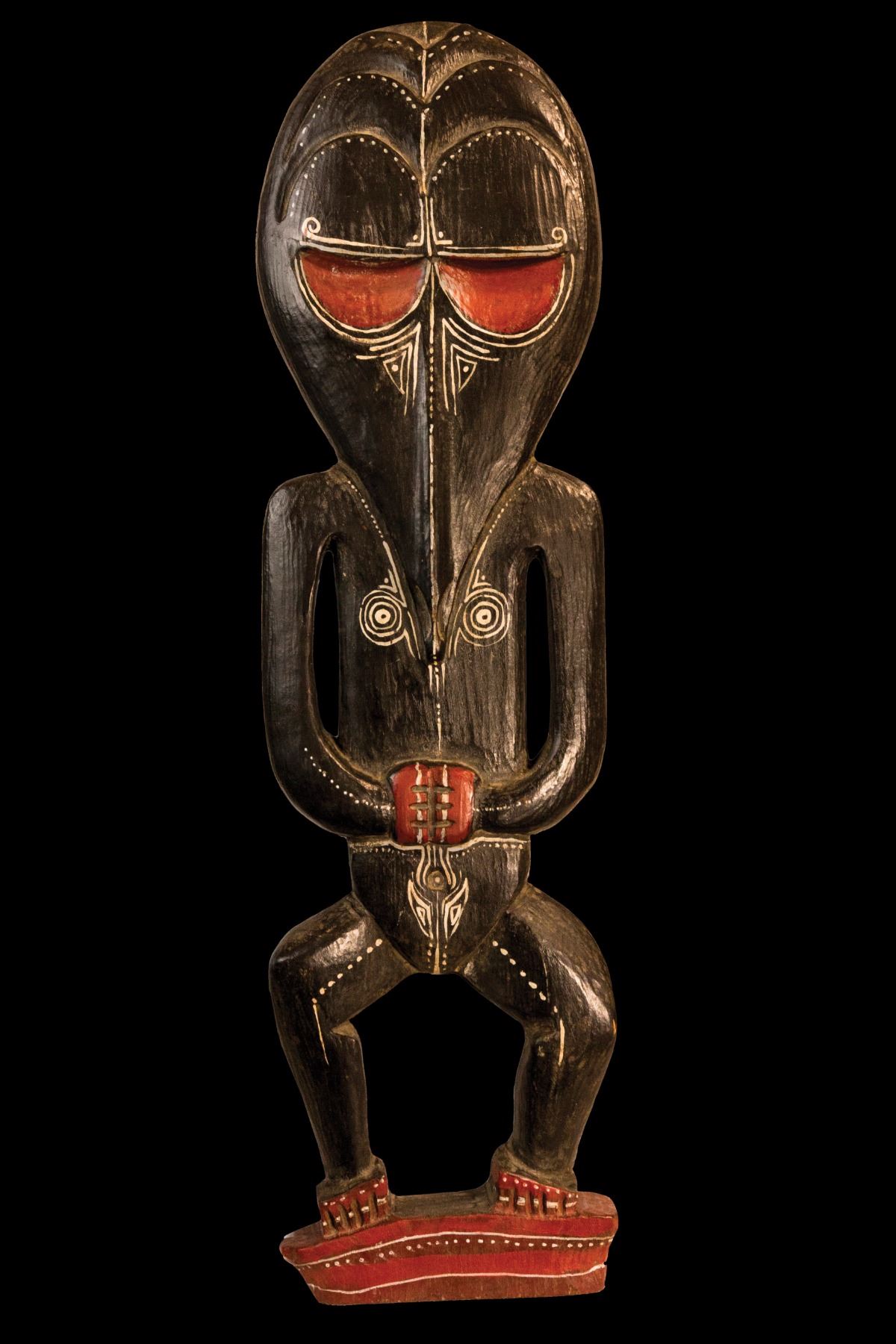 (1960s) A gorgeous carving of a PNG tale mask board with a patinated polychrome paint scheme. 33.5"x9". VG+ with typical wear.