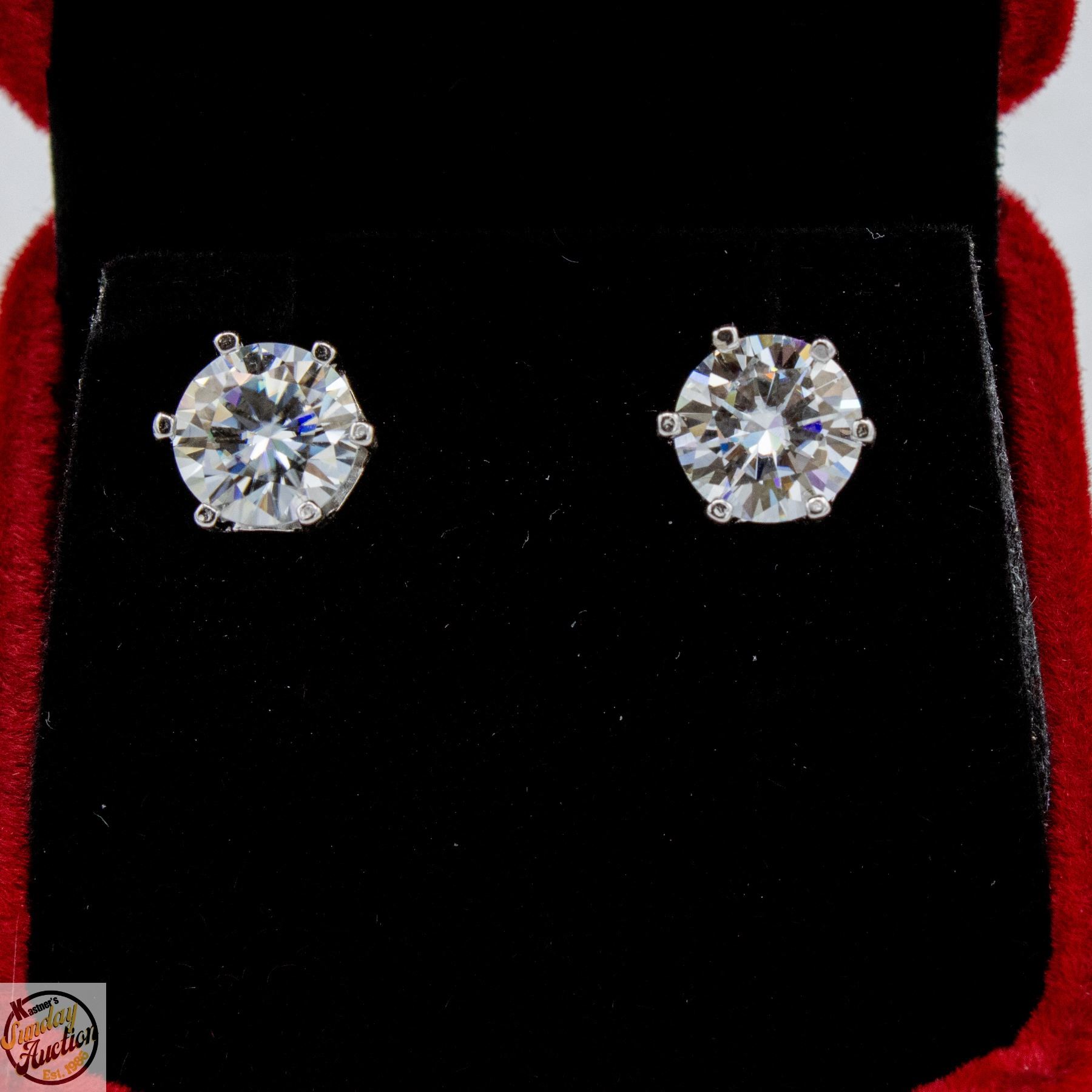 BRILLIANT CUT MOISSANITE STONES VVS D COLOR SET IN 6 CLAW FILAGREE BASKET HEAD SET IN 925 SILVER EARRINGS WITH SCREW BACKS RETAIL VALUE $1,225.00 **ALL ITEMS MUST BE REMOVED BY 5PM SATURDAY, APRIL 25TH 2026. ALL REMAINING ITEMS WILL BE SUBJECT TO A $6.00 PER DAY STORAGE CHARGE. ANY ITEMS REMAINING AFTER MONDAY, MAY 11TH 2026 WILL BE CONSIDERED FORFEITED. NO REFUNDS WILL BE ISSUED FOR FORFEITED ITEMS. TO SCHEDULE A PICK UP APPOINTMENT CLICK HERE