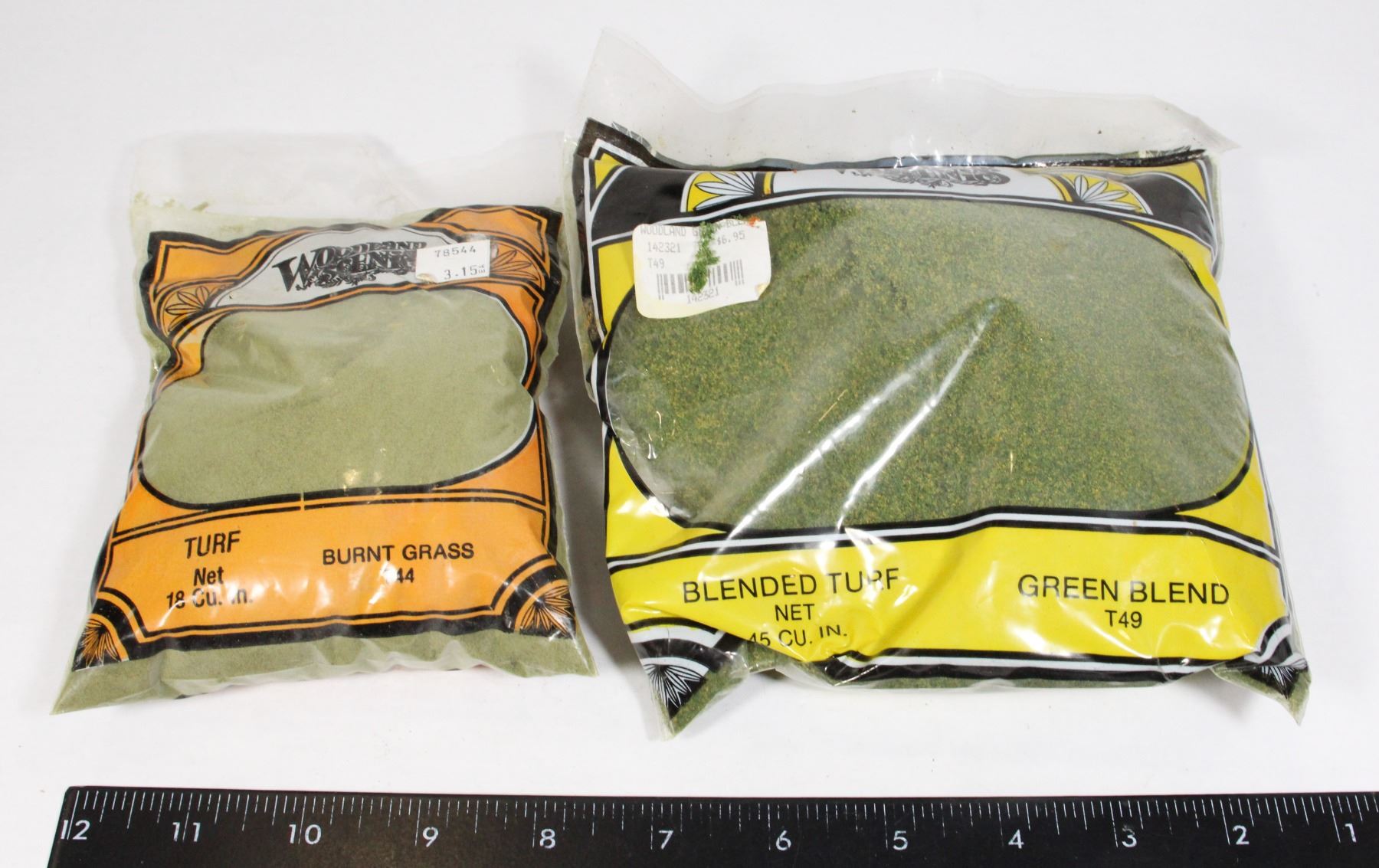 BURNT GRASS TURF T44 AND BLENDED TURF GREN BLEND T49 WOODLAND SCENES MADE IN USA FOR RPG GAMES RAILROAD FOREST DISPLAY MINIATURE ETC