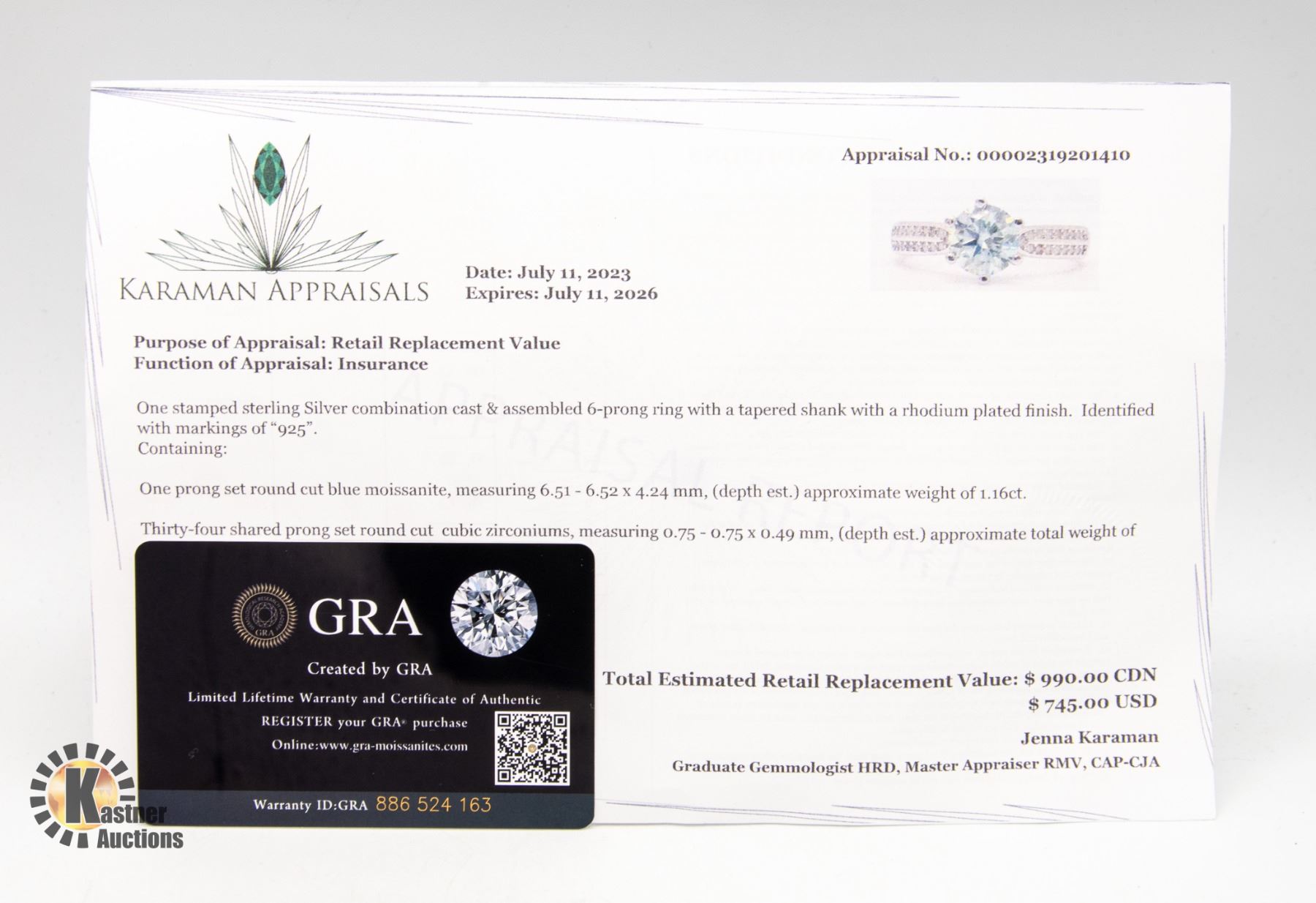 It is the sole responsibility of the purchaser to remove their items within the prescribed time. Kastner Auctions Ltd will NOT provide any delivery or transport of any nature for live auction items.