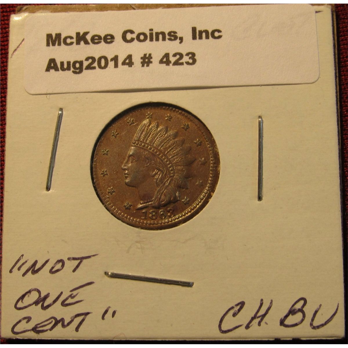 423. 1863 Civil War Token. "Not One Cent". Choice BU .